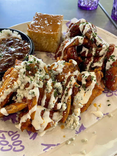 Have eaten food from here 3 times and it was fab! Atmosphere - LOVE the purple color scheme - even love the purple to-go bags! They make me smile!!! I don't remember if they have purple straws but that would be cool! Might be cost prohibitive but I love Culvers blue straws and CFA uses red...both to match their logos. Food - Anyway - love their tea - not everyone makes great tea...some places scorch the tea leaves by using boiling water right away...which makes the tea bitter. This is perfect so they obviously don't do that. Have eaten the chicken on the bone, the 6 piece crispy wing meal, and a chicken biscuit this morning. Let me say that I will probably not go to CFA anymore for breakfast. We quit ordering CFA's chix biscuits because they don't cook the filets enough and they have a 'yongy' texture - gross! (but they do cook their sandwich filets enough which is odd) and you can't order them well done anymore either - holds up the drive through they say. :((( No worries - my chicken biscuit this morning from CC's was fab! Biscuit didn't fall apart, huge piece of chicken in there that was fully cooked, and perfectly crisp coating, not too thick. When I ate in for my 6 piece wing meal, it actually wasn't on the board and I was ordering everything separately and the cashier said they had one and he re-rang and it save me $1 which was nice of him. I do admit that I think the meal was pricey - it was $19 and change for 6 chicken wings (normal size, not huge, not small - actually they were perfect size), collards, corn bread and tea. I know they don't have the purchasing power of a chain, but this is pricey...but hey, what isn't nowadays! :( The greens were awesome and the cornbread was good. Typing this review makes me want to go back for lunch! :))) And the 2 piece meal is cheaper so I will probably order that...it seems since COVID that wings are astronomically expensive!