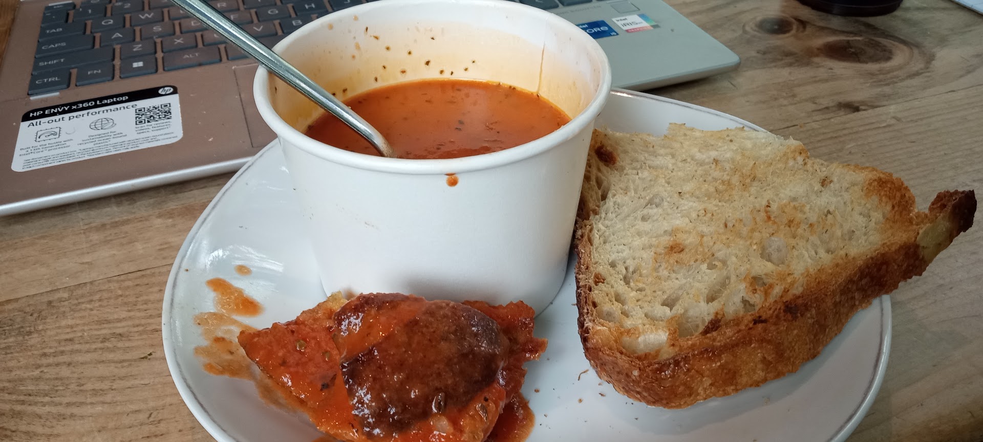Nevertheless, the server was taken aback by my questioning the serving size and had, in a reluctant brooding state, attempted to correct the matter by giving us a second bowl of soup. My SO and I each only took a couple of spoonful of the second soup just to talk about it. We left the rest and a couple of croutons (on the side). I could appreciate the effort to meet my expectation, but I didn't expect a second bowl of soup. All things considered by this point, when my SO asked if I wanted to leave, I conceded to the passive aggression in the cafe and ended our visit.