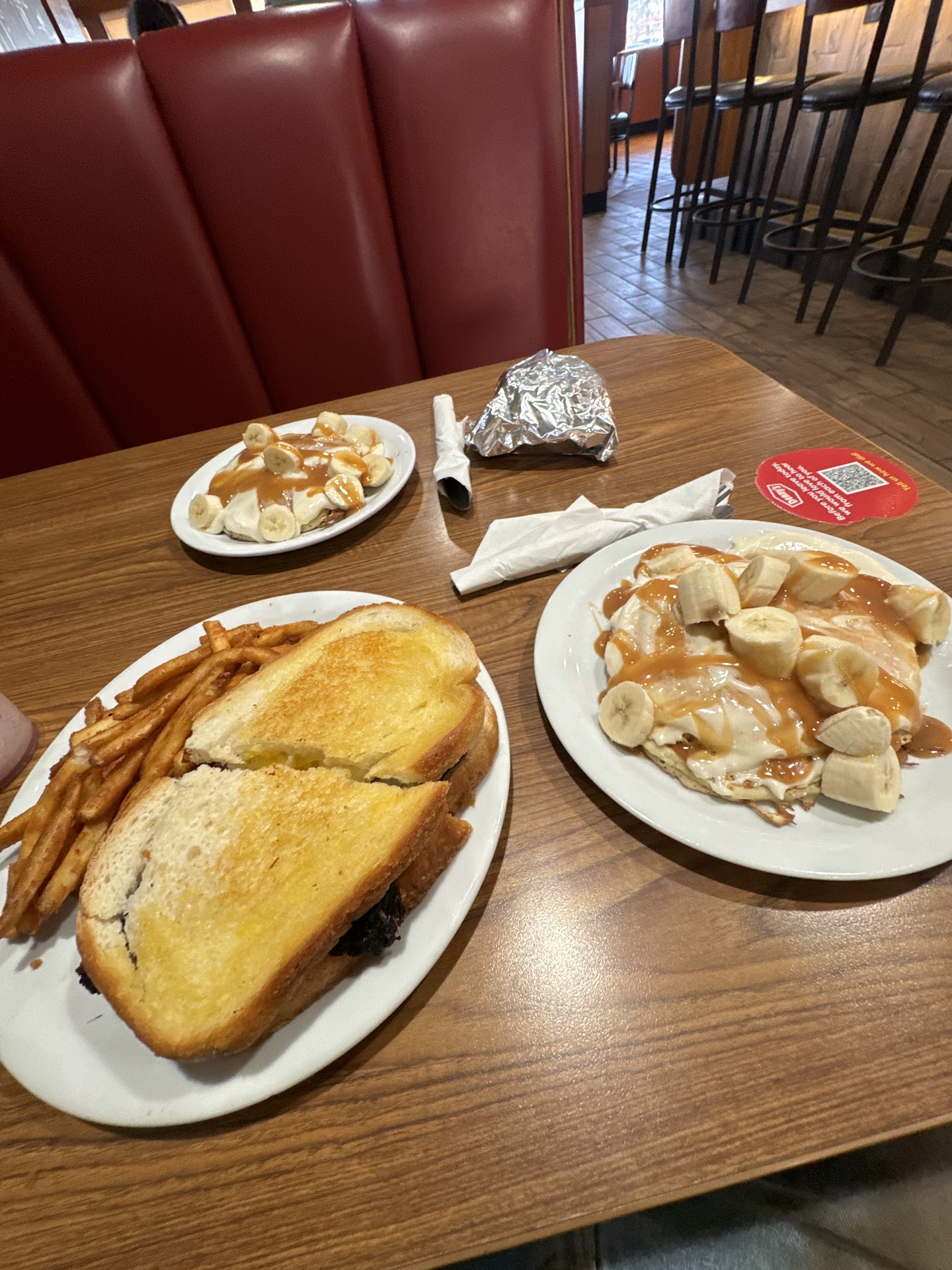 Read moreAtmosphere--despite being mostly empty, it was loud & unpleasant, due to servers that don't have an indoor voice, and their friends/family hanging out and allowing their toddler to scream. Service--slow. Couldn't even pay attention while we were ordering. I never got a coffee refill, and the coffee cups might be 6oz if filled to the top. Didn't get our order right, but didn't stick around to hear about it, either. More on service in the food section... Food--terrible. I asked for bacon, but got sausage links. My husband wanted sunny side up, he got mostly still raw with yolks broken. The server said, "the yolks broke is that ok?" He said it was fine and I said I'll settle for sausage. But then we both tried the sausage and realized it was spoiled. We put it off our plates and on a saucer at the edge of the table. When the server finally came to present our check, she said, "how was everything?" I told her the sausage was spoiled. She said, "oh. Do you want something else?" Our meal was done, or at least we were. So she takes our ticket and walks away, then returns and tells us she removed my cup of coffee from the bill to compensate for the spoiled food. Whatever, we hadn't asked for anything. She really did not care and I'm sure they continued to serve that sausage because she never said anything to the kitchen. So we paid our $40+ bill for some pancakes, French toast, hash browns and a glass of milk and left. Within the hour we were both sick with gastrointestinal issues, it had to have number that nasty sausage.
