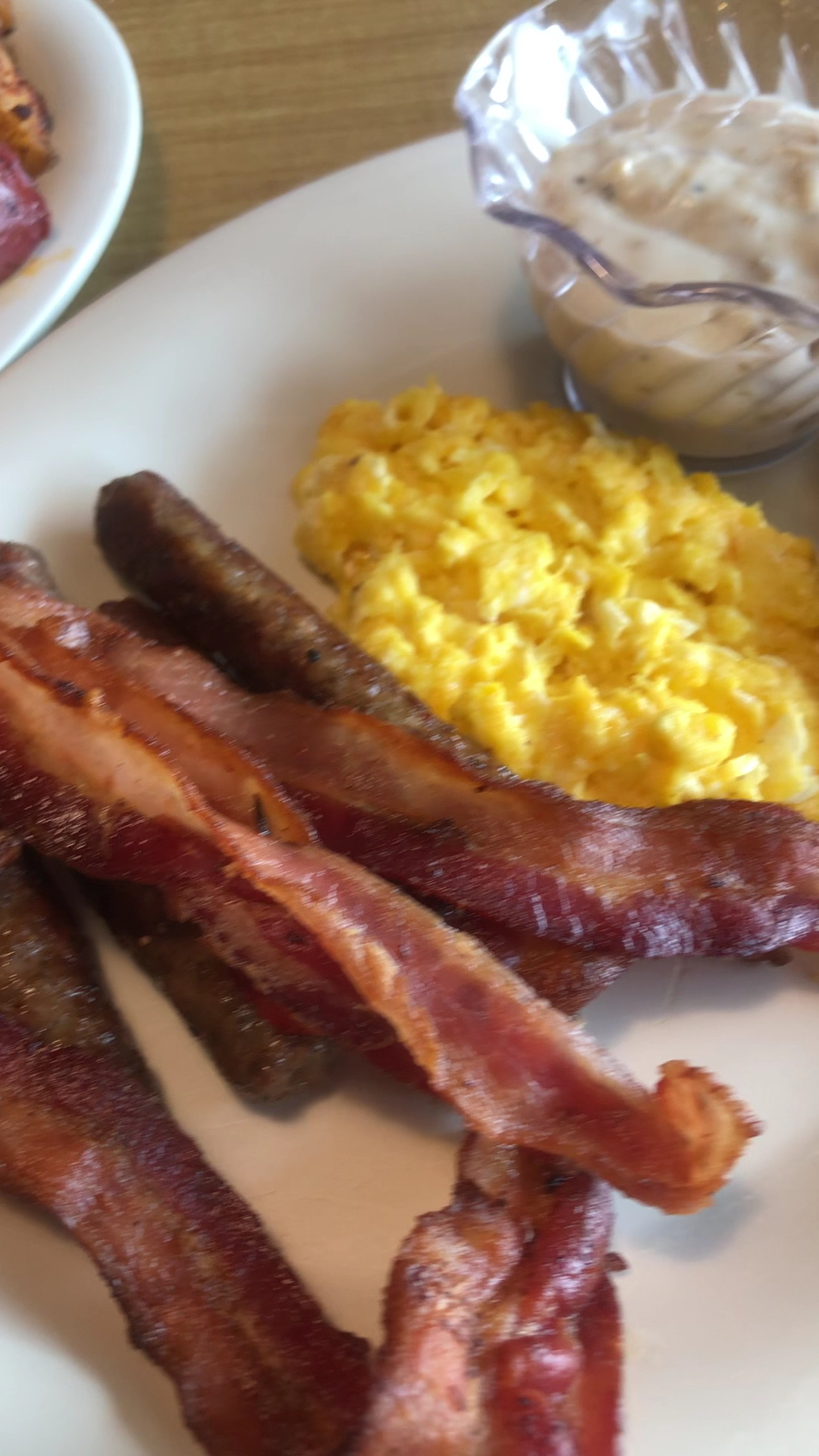 The grapefruit slices were fresh from a cut grapefruit, which was delicious. The English muffin was massive and fresh.