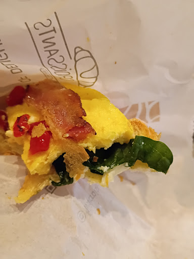 I ordered a breakfast croissant sandwich with cream cheese, egg, bacon turkey, tomato and spinach. The only redeeming quality was the spinach/ cream cheese, and even that was merely passable. The egg was cold, and the turkey bacon tasted unpleasantly like it had been microwaved, with a distinct chemical aftertaste. The tomato was mushy and cold, further detracting from the sandwich. I further want to add that the croissant was a couple days old, it definitely was not fresh. They advertise that the croissants are made fresh daily.. this is not the case.