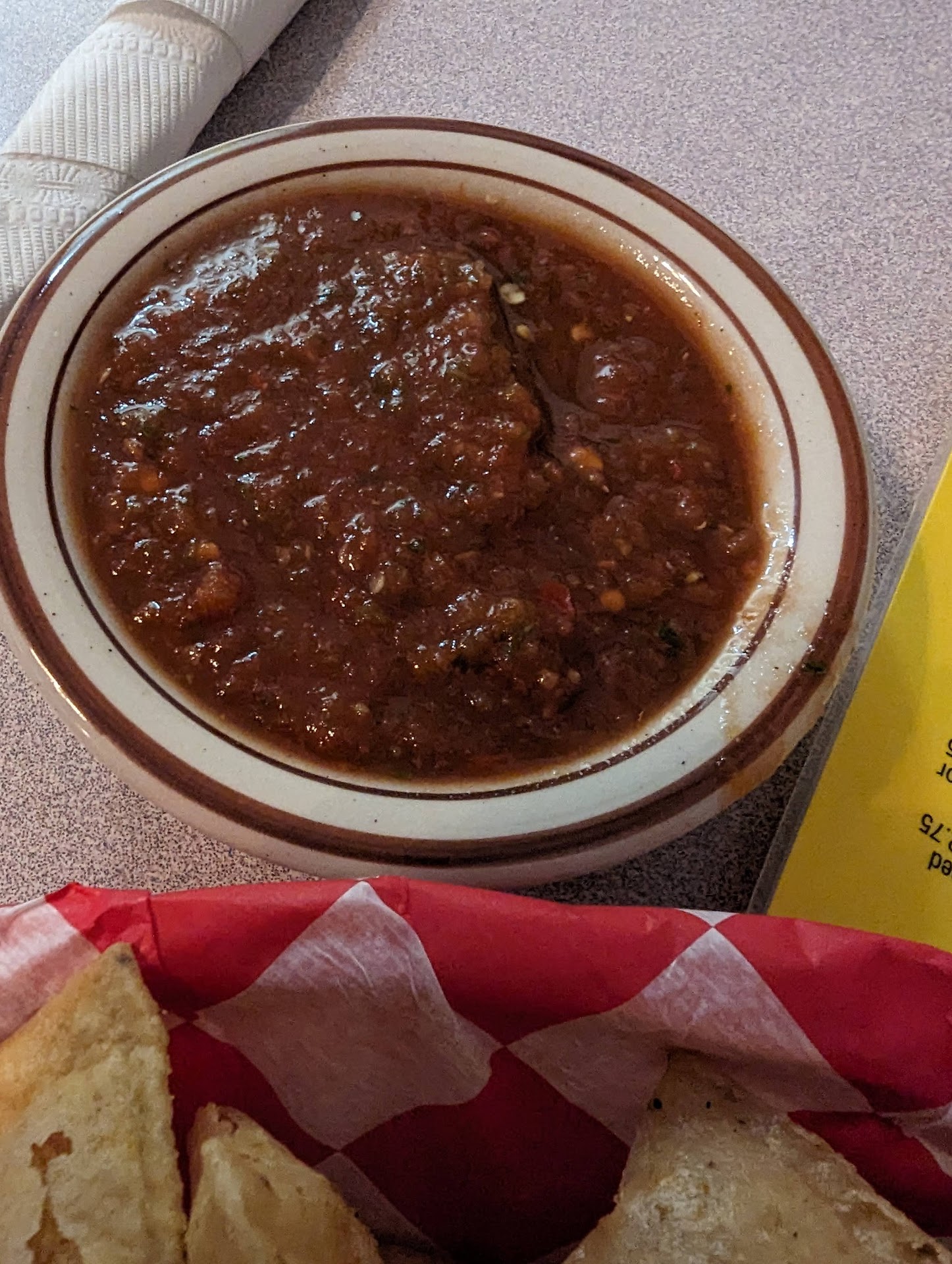 Instant star is the salsa. Warmed tortilla chips with a little seasoned salt already on them and some serious kick. We made the point of taking home salsa... Had a chicken quesadilla and a Huevos rancheros with the hatch green chili stew as the sauce. Green chili stew was nice. The potatoes from the huevos rancheros were a touch underdone but otherwise a nice example of good huevos rancheros. The chicken quesadilla was more along the line of a kid's meal, no veggies inside, only cheese and chicken. Not exactly what my wife was expecting from a Mexican restaurant. None the less there was a lot of chicken so no skimping there. Great waitress who was hustling the whole time, and an interesting demographic with mainly locals and all ranges of ages.
