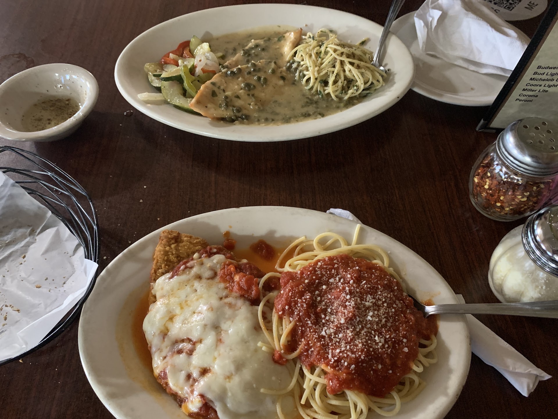 Read moreI sincerely hate giving bad reviews. I feel like a jerk. But, I feel like the reviews here are fake OR it recently changed ownership. There is no way the food we just had comes close to these reviews. First off, it is a reclaimed pizza hut. No big deal, but it still looks like pizza hut. Very bright, dirty, freezing cold and unwelcoming. The bread was good, but the oil to dip it in was garlic salt and pepper. My chicken piccatta was covered in garlic. I mean huge chunks, it was overwhelming and also soaked in olive oil. The first piece of chicken was just ok, it was the only edible thing on the plate. The 2nd piece was pink. I couldn't eat it. My fiancé had pasta marinara, it tasted plain. Like sauce from a cafeteria can. He is a good and non picky eater. He only ate half. He also cannot have cheese. He asked for no cheese on his spaghetti, then ordered garlic bread. It does not say on the menu there is cheese on the garlic bread. You would think the waiter would mention that when you asked for no cheese seconds before. So he ended up picking off the cheese and only eating one piece because it was also extremely greasy. And not that it matters because we didn't like it. But for an Italian place, the portions are small. Oh and obviously not even a piece of garlic bread is included with the spaghetti or salads. Those are extra. As well as the waiter forgot several items. Completely forgot the garlic bread and we had to wait another 10 minutes for them to make it. Which again, not worth the wait, still charged us full price and did NOT apologize. Do not by fooled by these reviews, unless you're not used to good italian food. It gets two stars because we were able to eat SOME of the food and the...