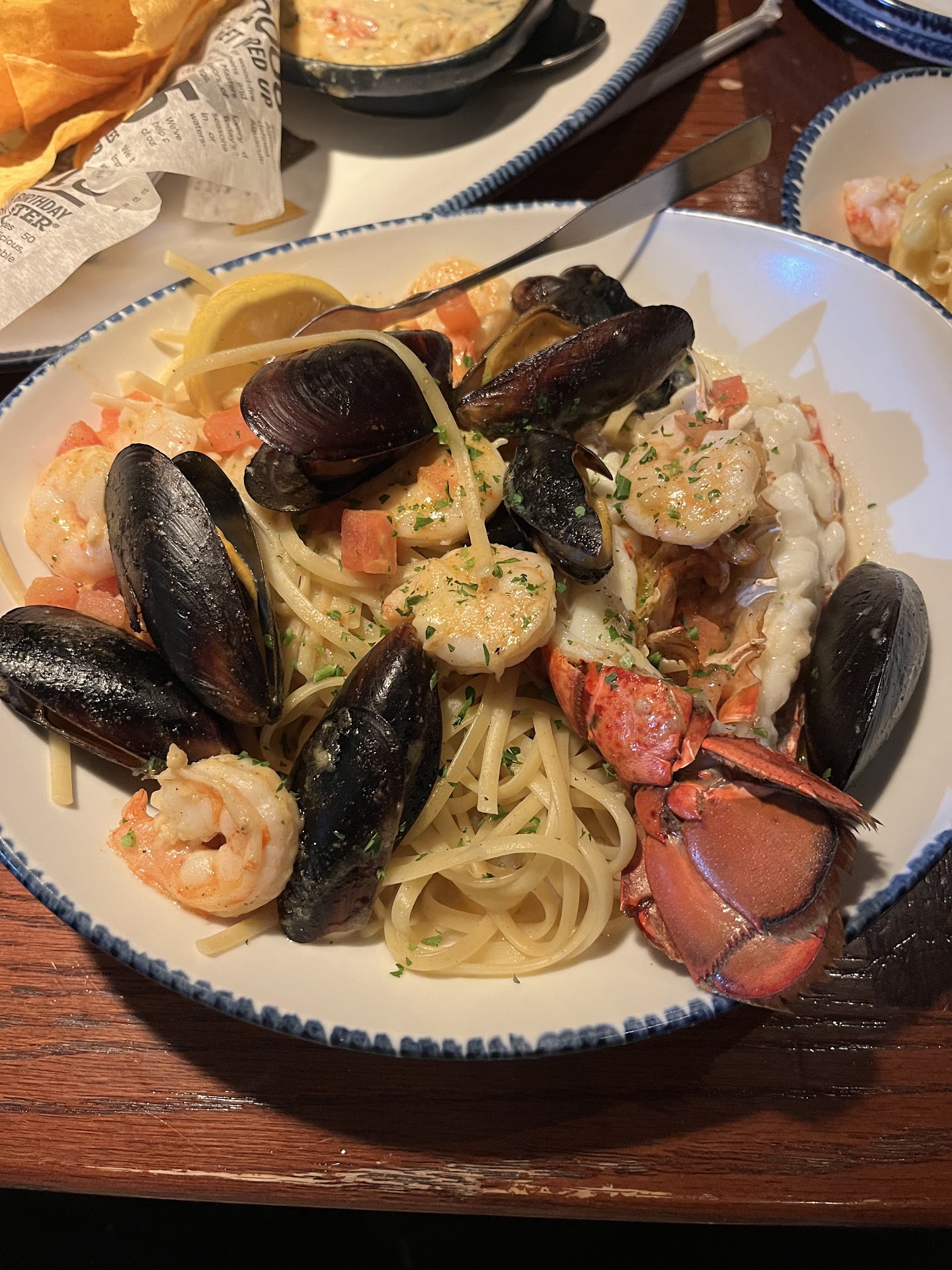 Read moreThis restaurant holds a special place in my heart a my husband proposed to me here 10 years ago. We were seated today at the exact table without requested it which made it more special. I started out my meal with 2 of their famous red lobster rolls which are always delicious followed by a garden salad with 1000 island dressing. To drinkI had a red sangria garnished with orange and lime. I was also brought a glass of water with lemon without requesting it which was great. Our waiter was attentive and stayed on top of our drinks throughout our meal. For three main course I ordered the captain's way shrink with tomato and mozzarella Celeste which was delicious. As I ate more of the shrimp I noticed I didn't care much for the breading, it was more of a corn meal breading. The tomato side was served cold with a vinaigrette dressing which was pleasant. I ended with a mudslide which was perfectly made. A great meal! We went around 1230 which seemed a good time to go. There were a lot of people but the service was fast. Everyone exhibited great customer service skills. This was a 5 star rating. We...