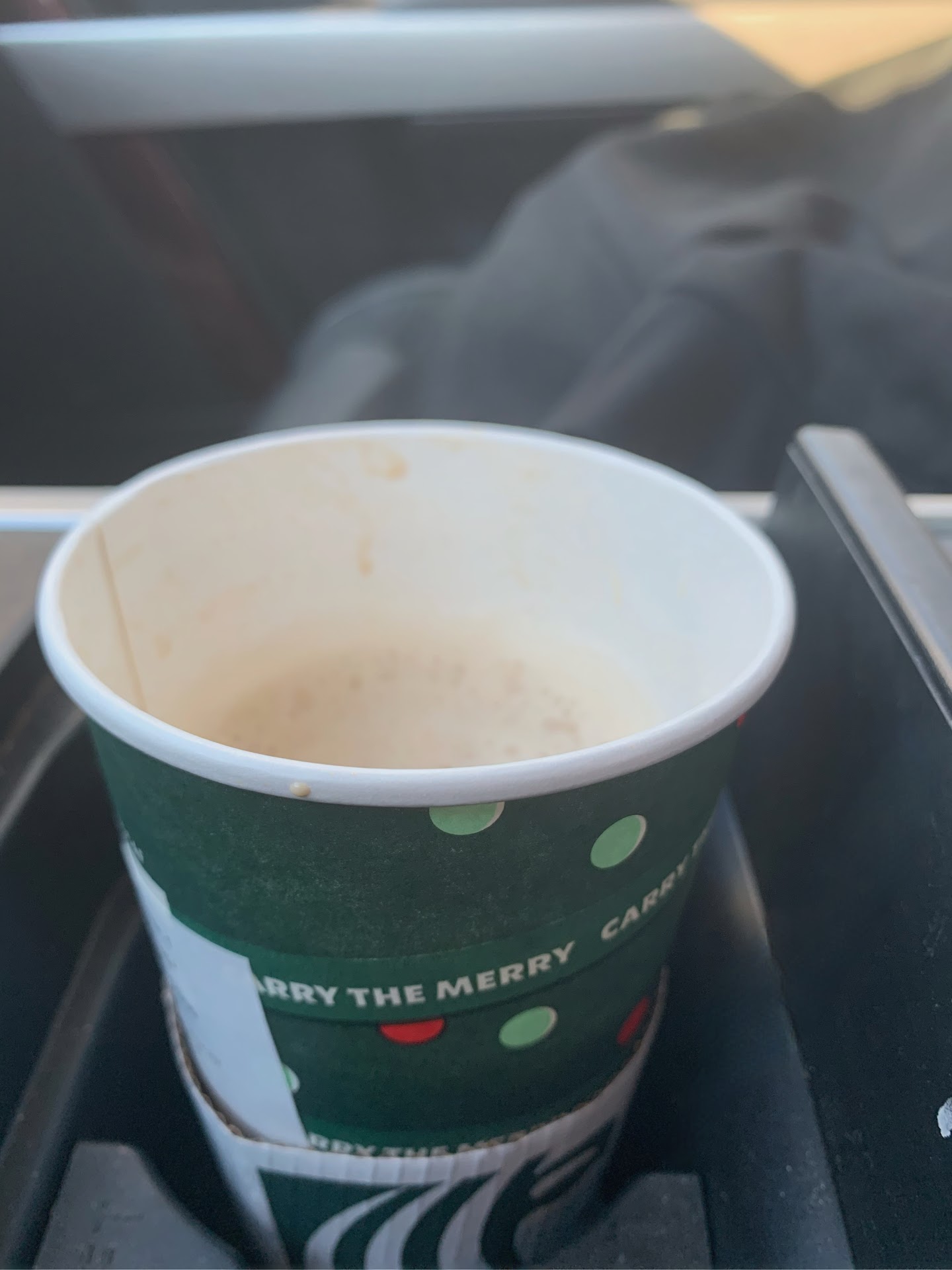 When I was driving to work, I took a large sip of the coffee through my straw, and was unpleasantly surprised when I got a mouth full of coffee grounds. I looked at the bottom of the cup, and it was full of coffee grounds. At this point, the coffee was undrinkable.