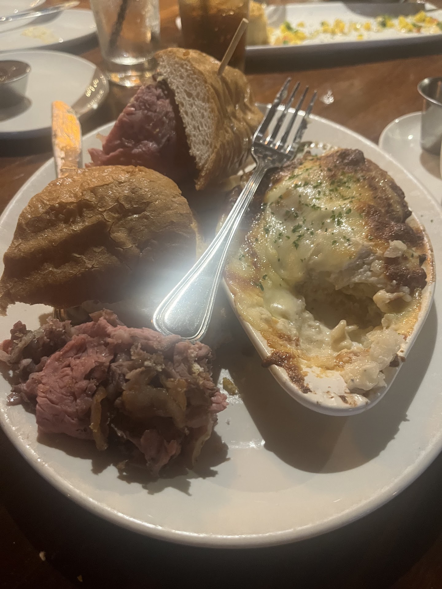 I never send food back to the kitchen, but, when the manager came to our booth while making his rounds through the dining room to ask how our experience was, I did address the issue honestly. He was very kind and clearly wanted to fix the issue, which I appreciated. He sent the steak back to the kitchen.