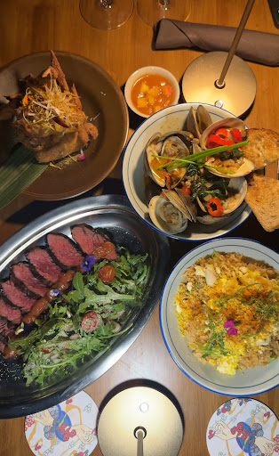 Our cocktails were great. My wife and I both enjoy whiskey/scotch -- the Grains of Gold was delicious (if a little on the strong side), and the Dance Doctor was quite refreshing. FOr food, the flavors were bold and complex - the appetizers were our favorites, including the Isaan Pork Jowl and Thaiger Salad - but our entrees were also delicious. We got the Crying Thaiger steak dish (recommendation - eat the steak with the greens, the acidity really livens up the steak) and the She-Crab Fried Rice. Final note on the food - you can order sauces on the side, and we loved the Thai Chili Jam, Chili Lime Sauce, and Prik Nam Pla.