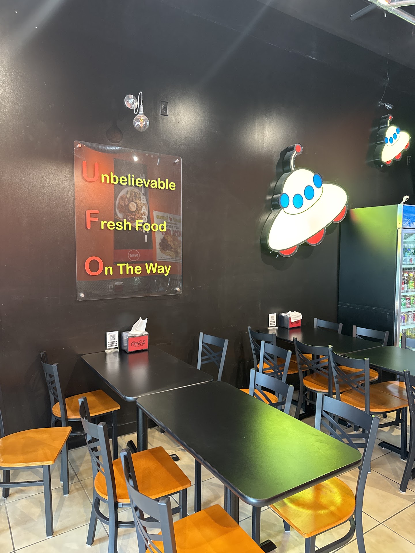 Read moreThis was our first time, and given our experience, likely the last. The large screen to order was very convenient. We absolutely love taking our time to figure out what we want without the awkward wait with the server. But the menu was confusing - it showed 50% off on sushi but the prices didnât display it and just showed â(off)â Various offers they have on whiteboards didnât register on the system. Maybe more importantly, the employee made a comment to us to suggest that we were taking too long to decide and that they werenât happy they had to take other peopleâs orders manually. Thatâs fine, I can move on from that đ. The prices were very reasonable. The salad was fresh and crisp. They included a small spring roll with our hibachis. But the rest of the food was sub-par. Bulgogi had a sour taste, was just not good. We got served steamed rice even though we ordered fried rice. Upon notice, they corrected their mistake. But even the fried rice was not good- had 1-2 peas and 2-3 cubes of carrots. They were out of miso soup and the one they freshly made didnât have any seaweed in it. They make a big fuss about yummy sauce not being part of the fried rice meat combinations, but the yummy sauce we got with our hibachi was half of a mini cup. Why they just wouldnât make it more abundant given the minuscule cost, I never understand. The atmosphere was family friendly. They also have reasonably priced beers. We just feel like there are better alternatives in the neighborhood to what we were served at UFO. We wish them the best and hope they can make a better first impression with other patrons. PS: They have continuous recording cameras and have shown to review footage to critique/review what others have posted on google maps. We get it, but made us...
