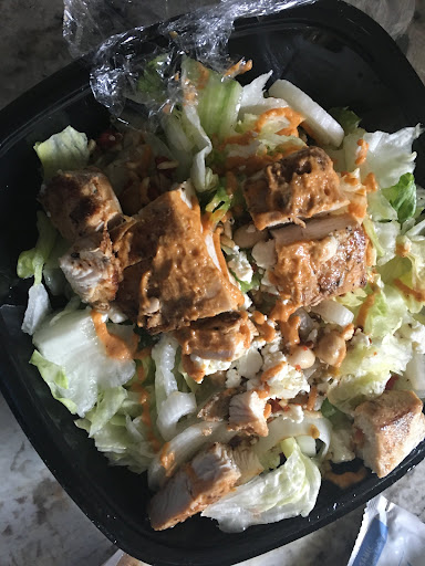Once I got home to eat this salad, I realized there was no plastic cover on the salad. Please see the attached picture with this loose saran wrap. The salad was all lettuce and filled with water. I ended up throwing half of it out.