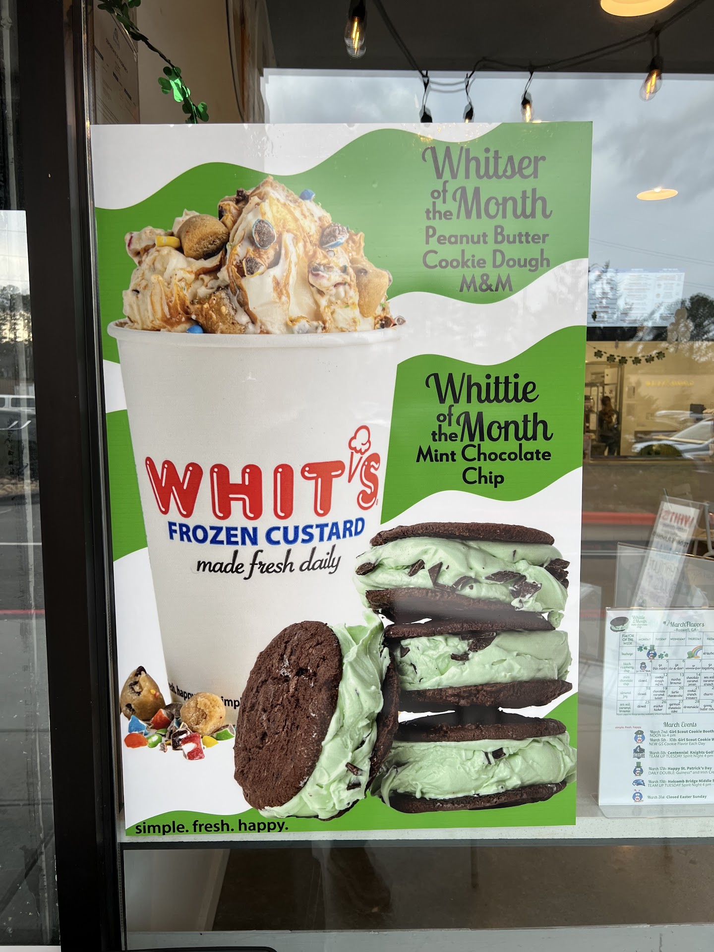 Read moreFor a month straight⌠I sent my husband all of Whits IG post to put it on his radar. Instead of an extravagant steak dinner on our anniversary I just wanted WHITS⌠the day comes and we go in for the first time and immediately you can tell On our faces we had trouble deciding on one of the many options. A very sweet guy named Nick came around the corner with samples to help with our decisions⌠immediately sold with the 2 scoop option, one waffle caramel crunch and one red velvet⌠and by very little convincing needed we grabbed some Whitties too! Needless to say we will be back, weekly! Nick and his wife were extremely nice and went way over above and beyond to make my little simple request on my anniversary the best treat Iâve ever had. 10/10 I will always...