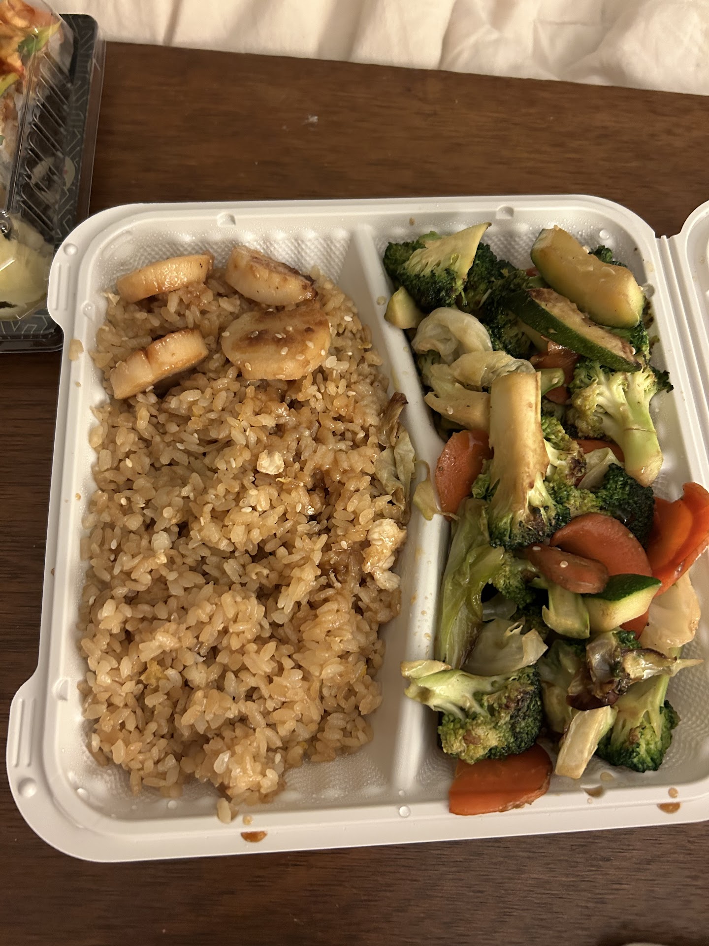 I was impressed with their score but not impressed with the food! I have enjoyed the same type but better tasting food elsewhere for less cost! I don't know if it was that I caught them just before they closed, but the taste and quality of my food did not match the pricing. I made two simple orders from their over head board that listed the dish and price. I was charged more than what was on the board and after adding vegetables to Scallop Fried Rice and paying extra, there was not an extra amount of vegetables. The dish itself was 3/4 bland rice that I could have cooked myself! Not even the traditional taste of fried rice! It tasted very lazy and thrown together. The only thing Fancy about the Salmon Roll was the price! I didn't know that it should cost so much more to deep fry sushi. Maybe I'm just used to Atlanta prices and this is considered gourmet or exotic Asian food in Alpharetta. I hope that they do better when they're not rushing to close/go home. (They're hours must be to 10pm bcuz they all were out of...