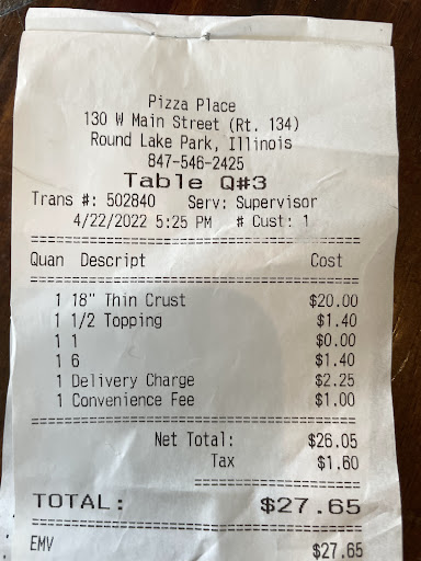 Read moreI live in Wisconsin grew up and work in Chicago. I am a very picky person when it comes to pizza. I rate the pizza place one of the top 5 thin crust pizzas in all of Lake County and top 10 in all Chicagoland. They have the perfect combination of the right sauce, not overdoing the spices and just the right amount of sweetness. The sasage, that's right SASAGE (in Chicago we don't say Sausage) well anyway it's seasoned right with a little fennel. The crust is also perfect not too thin like a wafer and not too thick and doughy. Growing up in Chicago in the 60' and 70's all the Ma&Pa pizza places served thin crust pizzas just like "The Pizza Place" I don't know where or when the so called Chicago deep dish came on the scene but in the neighborhoods it was all thin crust, although deep dish is OK...