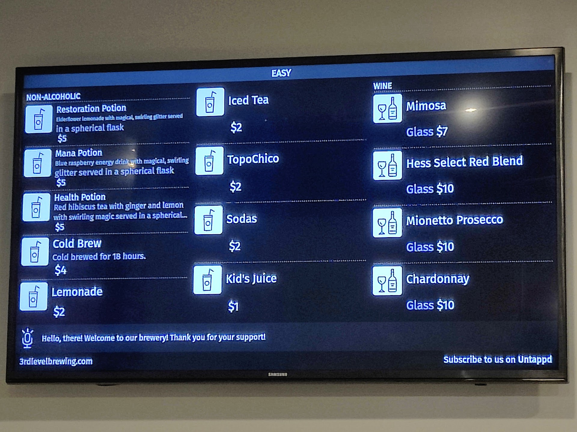 Read moreA sharp turn in after the Sunrise Road intersection is the small building of 3rd Level Brewing, a great new concept brewery with some very fun Easter eggs to bring friends and enjoy a variety of beers or mocktails. The staff are incredibly friendly and let us taste the "Health Potion" mocktail, a strong blend of hibiscus tea and lemon. Each mocktail has edible glitter to make them look more like magic potions, a great touch.