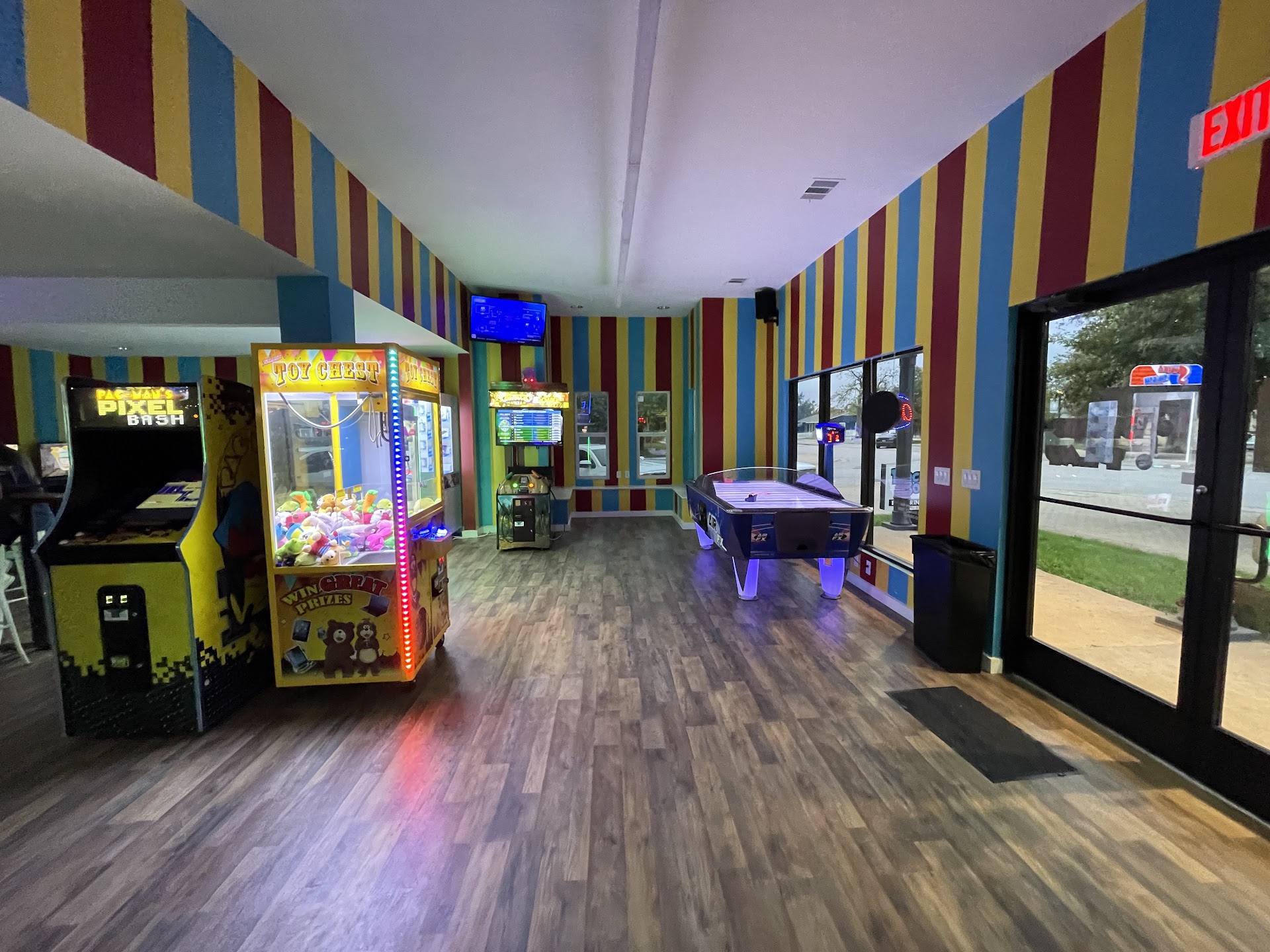 The interior has some arcade games to play (both kid and adult/gambling centered games). No place to sit inside to enjoy a drink/food. The smell of disinfectant is a bit overwhelming, but glad to know itâs clean I guess? The interior feels oddly disconnected from the exterior. Like two different concepts just got squished together.
