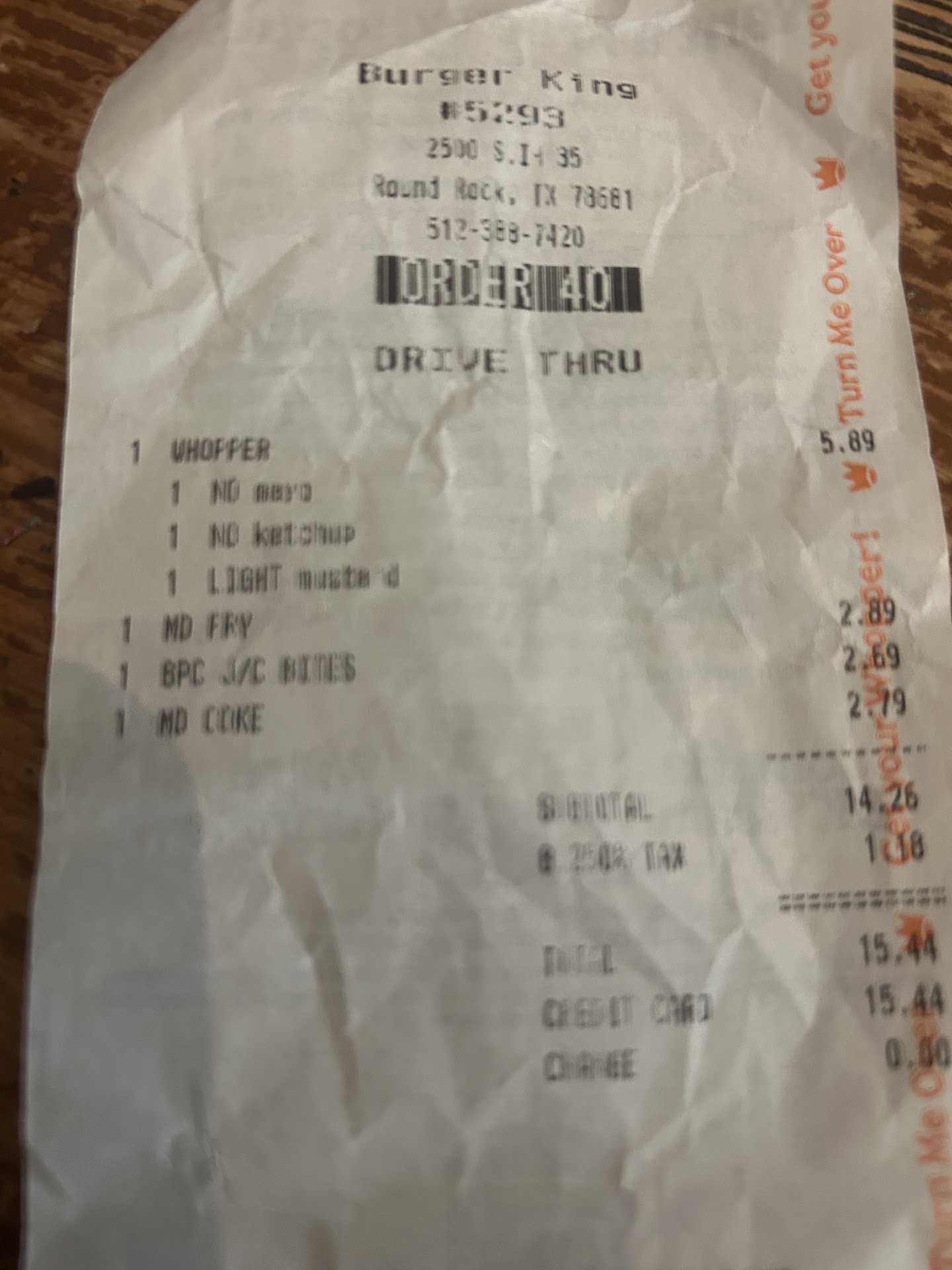 Read moreFood comes out quickly and in my experience at this location, fairly neat and tidy compared to other fast food that tends to appear very rushed and messy when you open it.