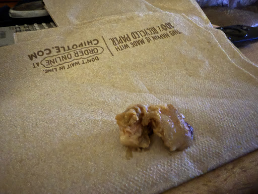 Today was no different. Fed the first five pieces of gristle and fat to the dogs, before I decided to take a picture. This was probably the grossest burrito I’ve had at this location.