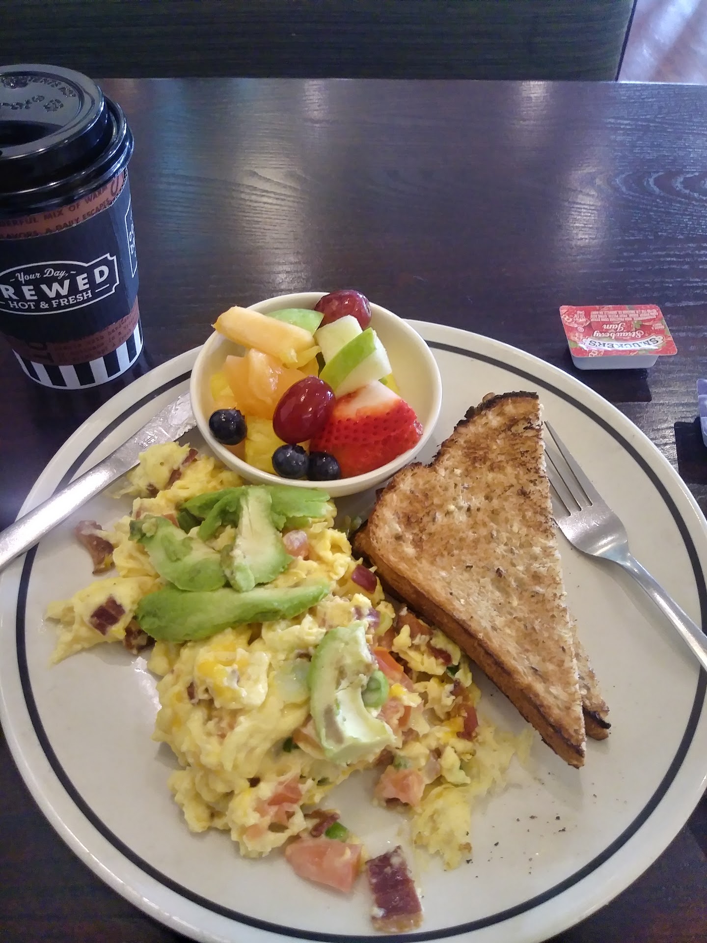 Read moreGreat potential, poor execution. My first time going here, looked very appealing for breakfast but had too many problems with the service. There was no line when we walked in, it was very quiet. First, we were not given a number but were just told they would bring food to our table. I noticed everyone else had a number. After passing our table with our food I managed to flag them down. One of the items we ordered, Bacon Avacado Egg Bowl, was missing from our order despite two of us having told the person taking the order and I heard her mumble "avacado egg" as she was entering the order. After confirming it was not on the receipt they told us we'd have to go back and order it again and by now there was a pretty decent line so one of us would have to stand in line and wait to order something they managed to not get into our order while food gets cold and everyone else eats without them. We opted to just forget about it and do without. They also only brought pancakes with no syrup and only one set of silverware for 3 people so we had to wait while our food got cold for them to bring additional silverware - this is one of my biggest restaurant peeves. I had ordered a Vanilla Sweet Cream Cold Brew. It didn't taste like it had any coffee in it at all, there was nothing creamy or vanilla about it at all. It literally just tasted like really watered down Swiss Miss powdered hot chocolate. Disgusting. The Bananas Foster Pancakes were pretty good but I happened to have just had the very similar Bourbon Street Pancakes from Another Broken Egg and they were much better with bananas in the pancakes as well as on top. Bacon was very good, nice and crispy. Cinnamon roll was pretty good. The apple juice pouch for some reason was very sticky. Even after washing my hands they were still sticky for quite some time. Overall, food was pretty decent but service could have been much better. They certainly lost out of the sale of a meal because they simply couldn't...