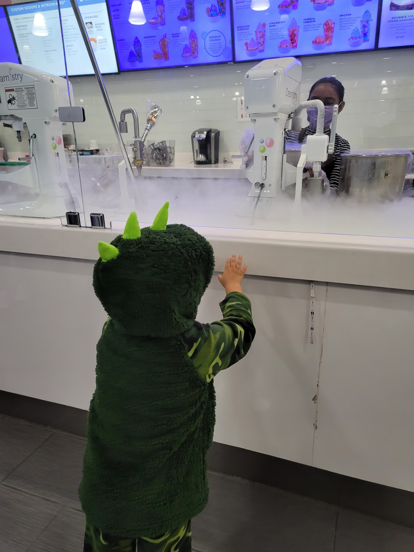 Read moreI don't like giving bad reviews but I have concerns. The young lady at the register took my card with her right hand and processed my payment then proceeded to make ice creams without washing her hands and only put a glove on her left hand after touching a few items first and never put one on her right hand. Even though I don't think they touch the food products directly in front of us, she is touching every scoop, multiple bottles of milk, and handles of the ice cream machines and I couldn't help but think about how many other credit cards she touched without washing her hands before mine. I understand that a lot of pathogens couldn't survive the nitrogen, but it's still just gross. WE ARE IN A PANDEMIC, and even if we weren't, that level of cross-contamination without regard is cause for concern. Please make sure the employees wash their hands or at least put gloves on both hands; ideally both. I will say the manager was nice, I tried to quietly just ask him to have them stop my order but one of the employees interjected and unfortunately the other patrons heard of my concerns at that point. He was nice enough to say he'll refund me, I just can't bring myself to eat the ice cream at that point. I have tried their Cookie Monster one yesterday and that employee was careful so maybe this was new employee. The ice cream is good, just keep an eye on the staff, and maybe think about having a touchless process for the employees? Just my suggestions. Sorry guys, I...
