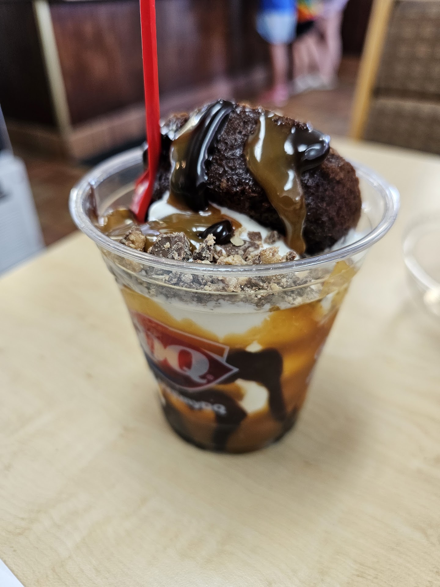 I couldn't believe my eyes, we ordered a chocolate dipped cone. She was ladelingng the chocolate on it not dipping it. The chocolate sauce was streaked, as it ran all done the cone and the employees hand. The part you hold with paper was covered in choclate sauce. The white was still showing. She then grabbed a rag and wiped off the paper part on the cone. It was stained brown with sauce all over it. The other employee started to make my small cone. It was broken, which she saw it was broken. I asked the cashier of that was mine, because it was broken. She looked at me dumbfounded. She said She could re make it. At this point I was appalled. They were really going to send that out the window and think both were ok? Where is thier pride in work? How do they think it's ok to serve something like this? I had company from out of town. I thought it would be a nice treat to ho to a local DQ. I was so embarrassed. Obviously I told the cashier never mind and...