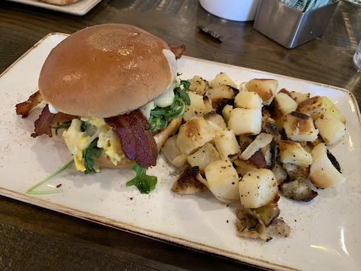 Read moreI had recommendations from co-workers that I try this place, so on a Sunday around 9 a.m. me and my wife decided to try it. We had no reservation and I knew it was a popular spot, so I came prepared to wait. As I walk through the front door to check in, and before I can speak, the host hastily and authoritatively tells me, "If your name wasn't called, you'll have to wait outside." Busy morning, no harm, no foul. I ask to be put on the list, he takes down my name and number, and tells me it'll be 45 minutes and that we would receive a text. We received a text saying we were in the queue and would be notified when it's our turn. An hour goes by, we weren't called and received no text. I go back in to inquire and there's now a different host. I tell him my name and show him the text message time. He checks the list and my name is somehow no longer there. He apologizes and moves me up to the next slot, which took another 10 minutes. We finally sit down in the dining room and meet our waiter. We order our drinks and food and wait. I notice an alarming number of antsy dine-in people with no food and an equally alarming number of staff focused on to-go orders as they are flying by every 3-5 minutes while patrons wait. I grew tired of waiting as it was 11:40 a.m. by this point and I was done with the experience. I ask my waiter to change box my order to go. Somehow it got to us in 5 minutes time. We take our food and pay. Not including tip, it was 52.78$ for an omelet with fruit, a blt with eggs, coffee, juice, and bacon appetizer. I'm hoping it's good. We get home (15 minutes drive) and the food is cold. I expected warm or maybe room temperature, but not cold. The blt had enough kale to completely hide the bread beneath it and enough dressing to still make the bread soggy. The omelet tasted great, even though it wasn't warm, but sadly what really put a bow on this present, and I wish I was joking, the side of fruit that came with my order was a black plastic condiment cup with a clear lid containing 4 pieces of fruit, each not much larger than a single die. The only thing that saved this from being a 1 star review was the second host who accommodated us and our waiter who was extremely polite and understanding of our frustration, and how good the omelet tasted...