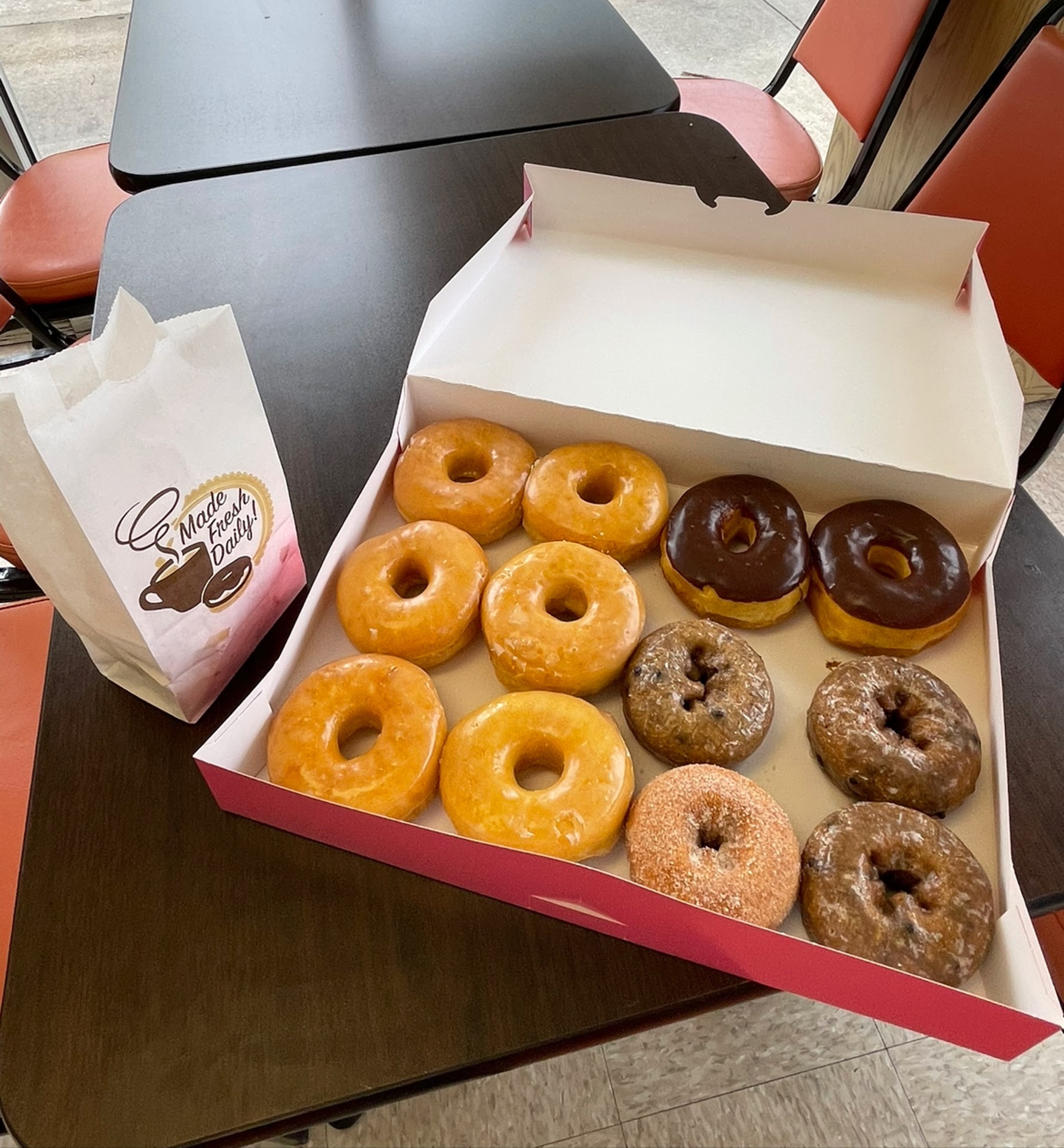 Read moreDrive-thru! Staff masked up! 12 donuts for less than $11! Come get your wonderful donuts in this neighborhood shop here. Fresh crunchy apple fritters, super moist fresh bear claws with cinnamon inside, soft and super flavorful blueberry cake donuts, not too sweet pleasantly flavored jelly-filled donuts, ...I still have more in the box. Their bear claws and apple fritters are priced the same as donuts and can be fit in a 12-piece box. I fell in love with this charming donut shop in the...