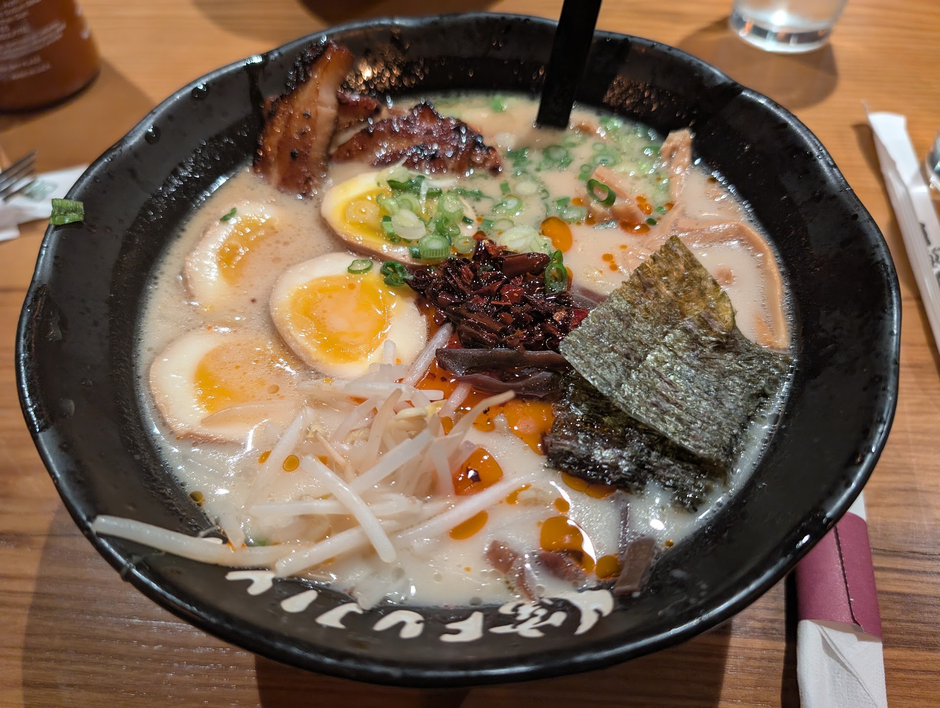 TLDR on food, 4/5: I got the spicy beef ramen. It was pretty good. The ingredients didn't strike me as totally fresh, which isn't too shocking nor is it a dealbreaker for ramen that tries to use authentic Japanese components in Texas. It did taste good, though.