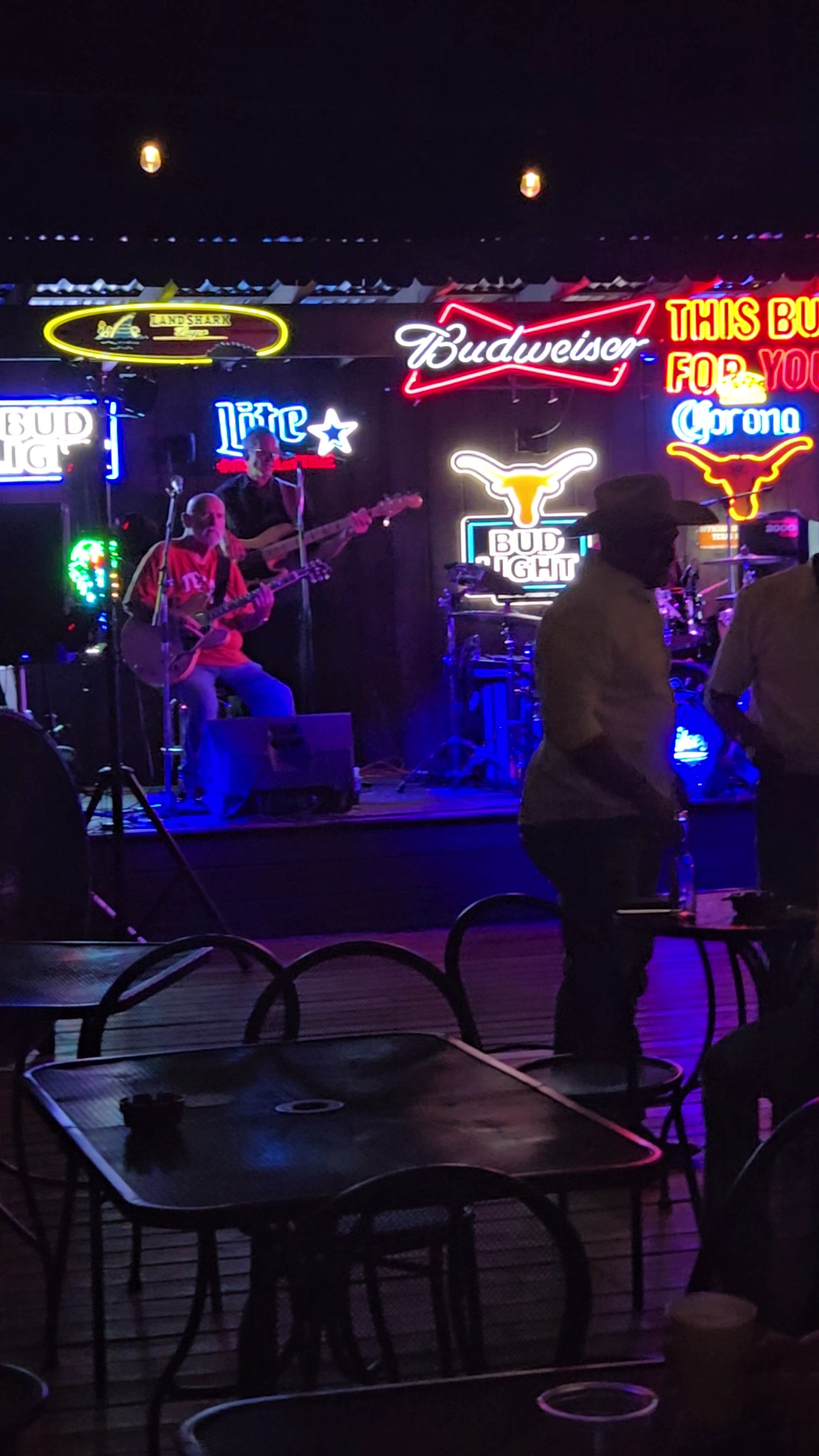 Read moreThis place is not close to us but we do enjoy their live music, deck and stage. Drinks are reasonable but I didn't like that my drink was picked up when I could have gotten three more sips out of it. Granted I already had another one waiting but I wasn't finished with the first one. Don't like that there are single bathrooms and seems some guy falls asleep in there. Some snacks would be nice but no...