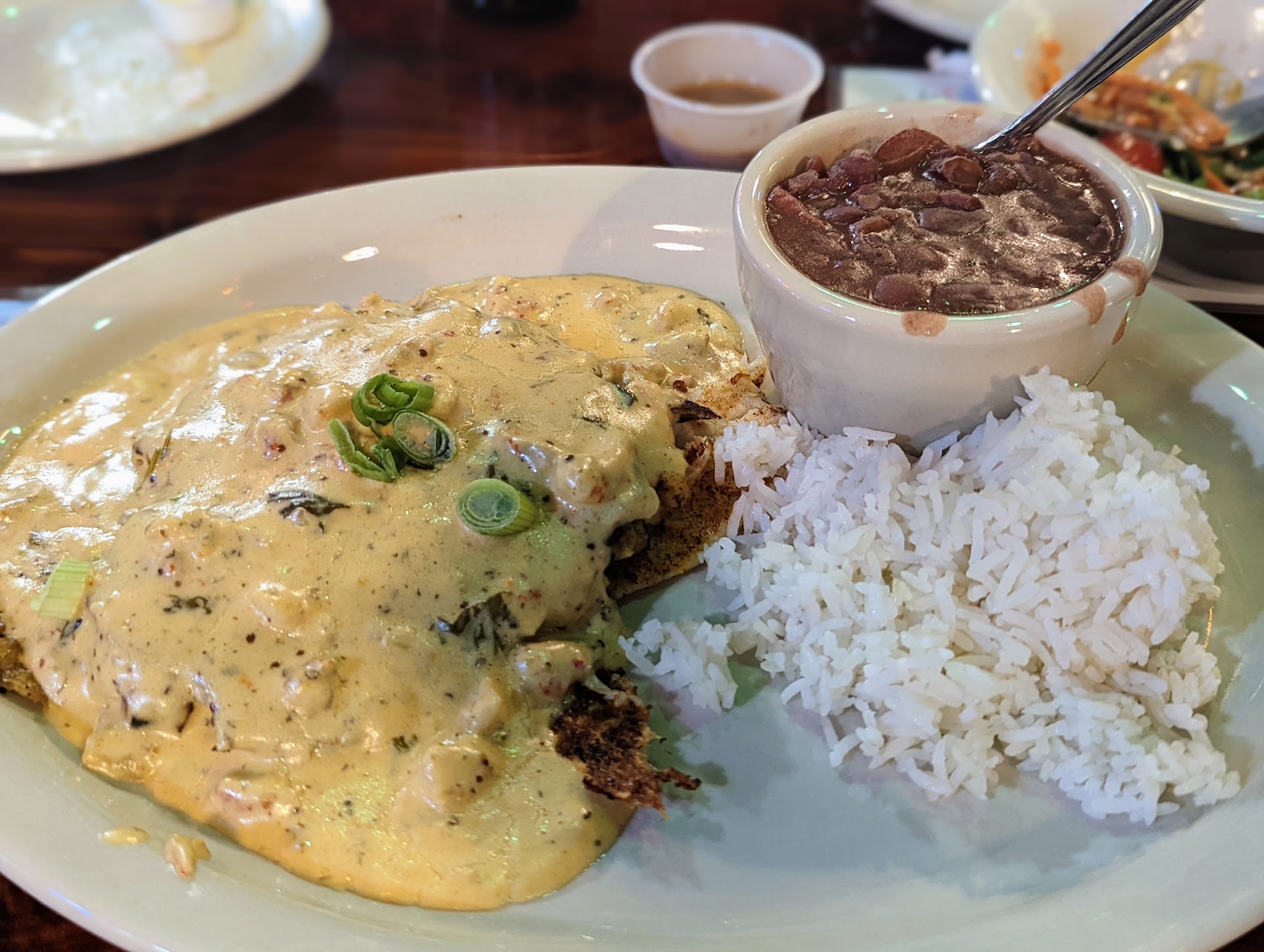 My dad first went there on a weekday night. He commented that it looked extra slow for a downtown restaurant but he said he was willing to try it because he had heard some positive reviews from me. I regret telling him those positive reviews because the two experiences he had, and the one I had with him were not pleasant at all. The first time he went there he said that there was too many fried options, that there wasn’t enough of Cajun options. He also said that the waitress he had didn’t seem to be too interested in taking care of him. Said she seemed to always be standing at the bar talking to the bartender and not there to help with refills. He said it was a little pricy and didn’t want to come back a second time. I convinced him to come back a second time with me a month later. I told him maybe you just had a bad waitress. He went and the second time was worse for him and it was just as terrible for me. We went again on a weekday and it was very similar for dinner, not that busy, almost ghost town like. We had the waiter sit us down and I was surprised at the menu. In order to get the Cajun feeling, the etouffee was an additional $7 to the already $20+ dollar tilapia I got. The waiter was also always standing by the bar. I asked a different waiter who she was talking to and they said oh that’s the manger, bartender and the owner. It seems they were more interested in watching espn than checking on the customer. The waiter said that happened all the time. I thought that was odd, maybe the owner, manager and even the general manager don’t care about customer service much. The food was okay, but paying extra for Cajun flavor is crazy, otherwise it’s just grilled or fried fish, and the Cajun was okay, but you can tell this is not true Cajun and that the owner and the chef don’t know what true Cajun and Louisiana food is. The food is overpriced, almost $90 for the two of us, with not the best taste, and the staff and owner don’t seem to notice you or care for you. If you want decent grilled fish just got to Fish Daddies, they are a third of the cost and have better taste and service. If you want true Cajun go to Mouton’s!! They are cheaper and true Cajun food...