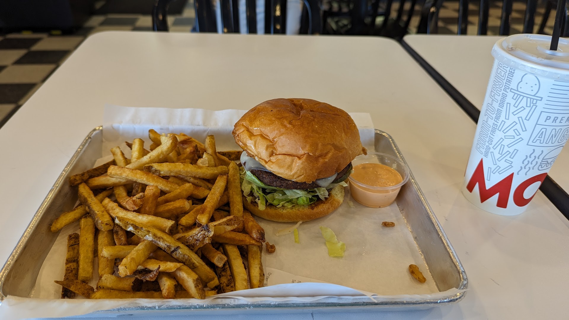 Our burgers were very tasty (especially the mushroom and Swiss), the sweet potato fries had a delicious seasoning on them, and the shake was good, too. The BBQ bacon burger seemed pricey for the size ($7.29 for quarter pound), but everything else seemed average pricing ($5.99 for mushroom Swiss burger, $4.19 for sharable size sweet potato fries, and $4.99 for a large Oreo shake). The food was made fresh when we ordered it so there was a little bit of a wait, but it meant our food was still hot and fresh when we got home to eat it 20 minutes later. All in all a...