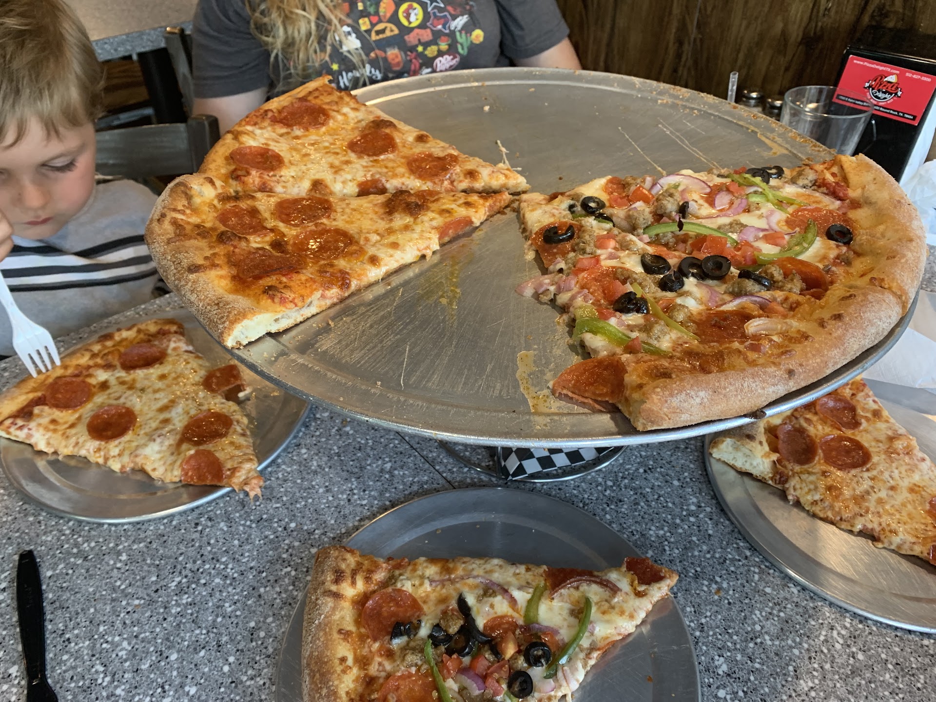 Read moreIt was Father's Day and everyone wanted me to BBQ.  I stood my ground and refused as this was my day to be celebrated damn it.  I sat down and scoured the interweb for GREAT PIZZA PLACES NEAR ME!!!!  and guess what.  This place showed up.  And that had a 20" pizza.  With a large family like mine, a 20" pizza could be a new bestie.  Order four 20" pies.  Basic setup on the pies.  One cheese, 2 pepperoni, and 1 pepperoni and jalapeno.  I cringed on the Jalapenos because it was $3.50 for the added topping but since it was Father's Day, I was going all out.  Picked up the pizza on time and shuttled off for the evening of festivities with the fragrance of Italian pepperoni, marinara, and jalapenos wafting about the van's vast 15-person seating cabin.  The Pizza Reveal brought the day crashing down around me.  My long drive to the party with the fumes boiling around in my head were having a Pavlovian effect on me.  I could wait no longer,  The van had hardly come to rest before I gnawed the box of what should be glorious culinary heaven.  And there to my HORROR was my Pepperoni and Jalapeno 20" Pie.  20" PIE!!!  314 square inches of pizza.  and 24 Jalapenos.  24 JALAPENOS for $3.50 on 314sq" of Pizza?  The average jalapeno is about 1 inch.  That is $.14 per jalapeno and on a 20" pizza cut into 16 slices means about 1.5 slices of jalapeno per slice of pizza.  Let's Math that up real quick.  24 slices/pie for $3.50+Tax ($3.78)  32oz Can of Jalapenos costs ~$20 and there are about 920 slices/can.  At 24 slices /pie, the cost basis is $.52.  570% markup?  NOPE!  NOPE!  NOPE!!   The pizza was ok but some things I have to avoid on principle alone. Thanks for...