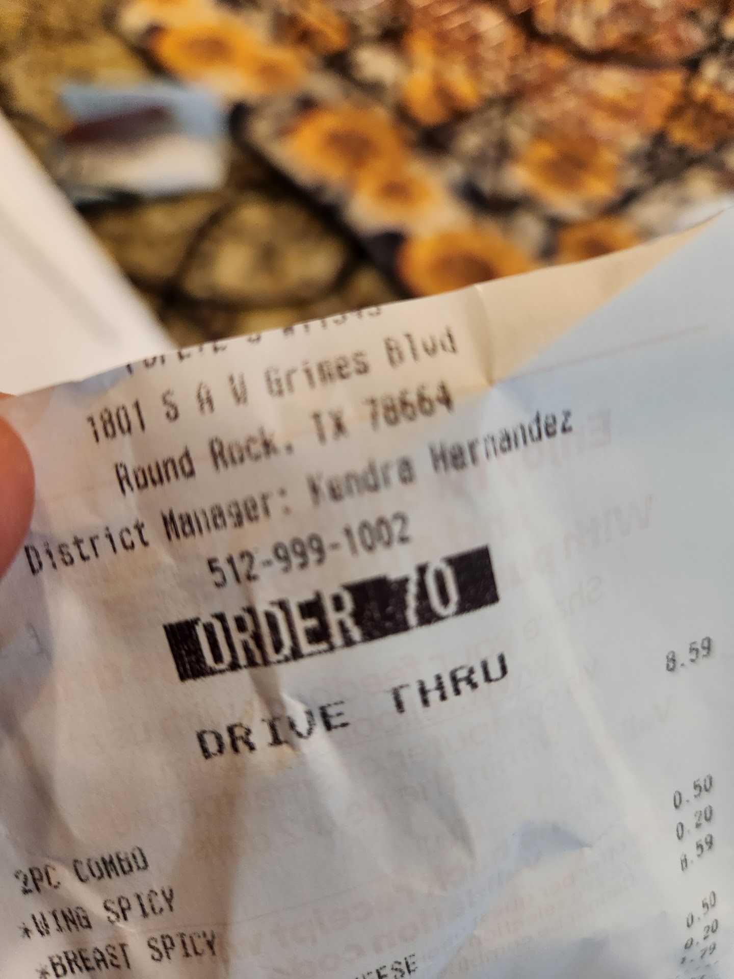 Read moreEmployees constantly provide undercooked chicken (with blood dripping out the thighs, overtly disregarding US Public Health Service Food and Drug Association standards), overcooked chicken (hence the “dry chicken” reviews above me), stale fries 95% of the time, cold mashed potatoes, no receipts, forgetting apple pies on multiple occasions, and unprofessional communication to company standards. The male employee who was working the cashier at 10:45AM on 10/11/2020 portrays a direct reflection via all of the above predicaments. Management and corporate level leadership needs to step up this exact location’s standards, and initiate a revamp for onboarding new employees, especially the candidate mentioned above with an exact time stamp. The encompassing vision here is understanding that recurring inadequacy of FDA compliancies and unsatisfactory employee conduct may in fact be mirrored from restaurant to restaurant. Moving forward, multiply, that exact understanding, but with 3,102 restaurant locations across 40 states and 30 countries. As a company who has spent over $100 million US on advertising via print, digital, and national TV in the last year, please advise allocating “marketing revenue” towards enhancing restaurant operations, as Popeyes’ slogan “Love that chicken” from 1983 (even though founded in 1972) may in turn translate to “Loathe that chicken” from the public; who in turn is directly responsible for the annual $3.7 billion in...