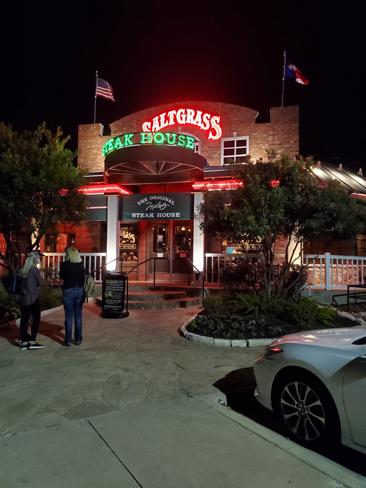 Read moreSaltgrass used to be top notch. It was our go to place for celebrations but the last few times have been meh. It is my son’s birthday and he chose Saltgrass. When we walked in, the hostess looked at us and immediately ignored us. We stood at the podium and waited several minutes to be greeted with “what do you want?” We replied, “ to eat?” The two hostesses (there were two) then proceeded to ignore us for several more minutes. They worked on their IPADs, then one of them asks. “ 4?” When we had already told her 3 and there were no Other people in the lobby to be sat. We were sat at a table and we waited and waited while servers passed by our table. I then saw a couple taken to a table about 10 feet away. The two people waited a couple of minutes and a server went up to them and greeted them and immediately got them some drinks. At that point my husband went to speak to a manager. While my husband was talking to the manager, I noticed that the table next to us had one server bring them food, another server brought them an appetizer and another server brought them more drinks. At this point we still had no server or drinks. My husband came back with the manager and a server. We gave our server our order and off he went. He took his time bringing us drinks and brought the salad with dressing when we specifically asked for no dressing on top. The food did come out quickly and the Pat’s ribeye and strip were good. The Cajun steak was bland. At this point we had two assistants come offer us a free dessert or appetizer. I needed more tea and when I asked our server he acknowledged me but then went to speak to another table and bused another table. All the while no tea for me. We did not say something to get free food. The general manager came and spoke to us. She said it is not normally so bad. My question is, “ why did we get bad service all around?” Was it because we were dressed casually or was it the color of our skin?” We are Landry Club members and we have never had such bad service in one of their chains. We had to drive 45 miles to eat at this establishment and this will be the last time. There are too many choices and eating out is expensive. I will be canceling my membership. The food can be the best but when the experience is shoddy, the food does not...