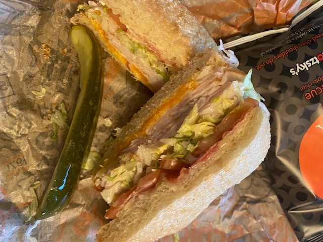 From the first glance, you can tell this sandwich means business. Stuffed to the brim with a tantalizing array of turkey and cheeses, it's a sight to behold. Tender turkey, crispy bacon, and a trio of cheeses come together harmoniously, promising a flavor explosion with each mouthful.