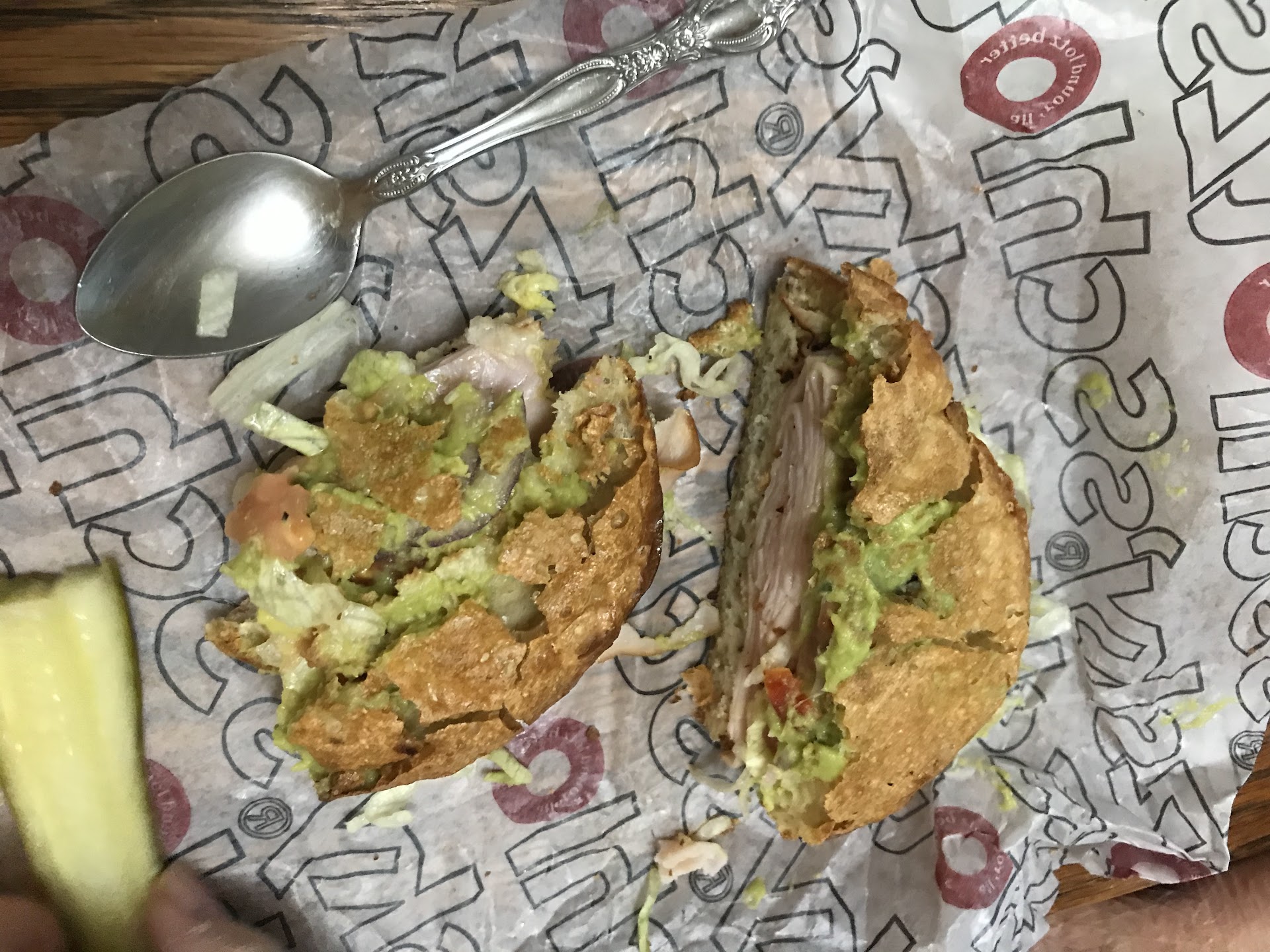 Ordered a large sandwich, 3 pickles, 2 baked potato soups, a Mac and cheese, a salad, 3 cinnamon rolls, and a drink. I spent $57 and change.