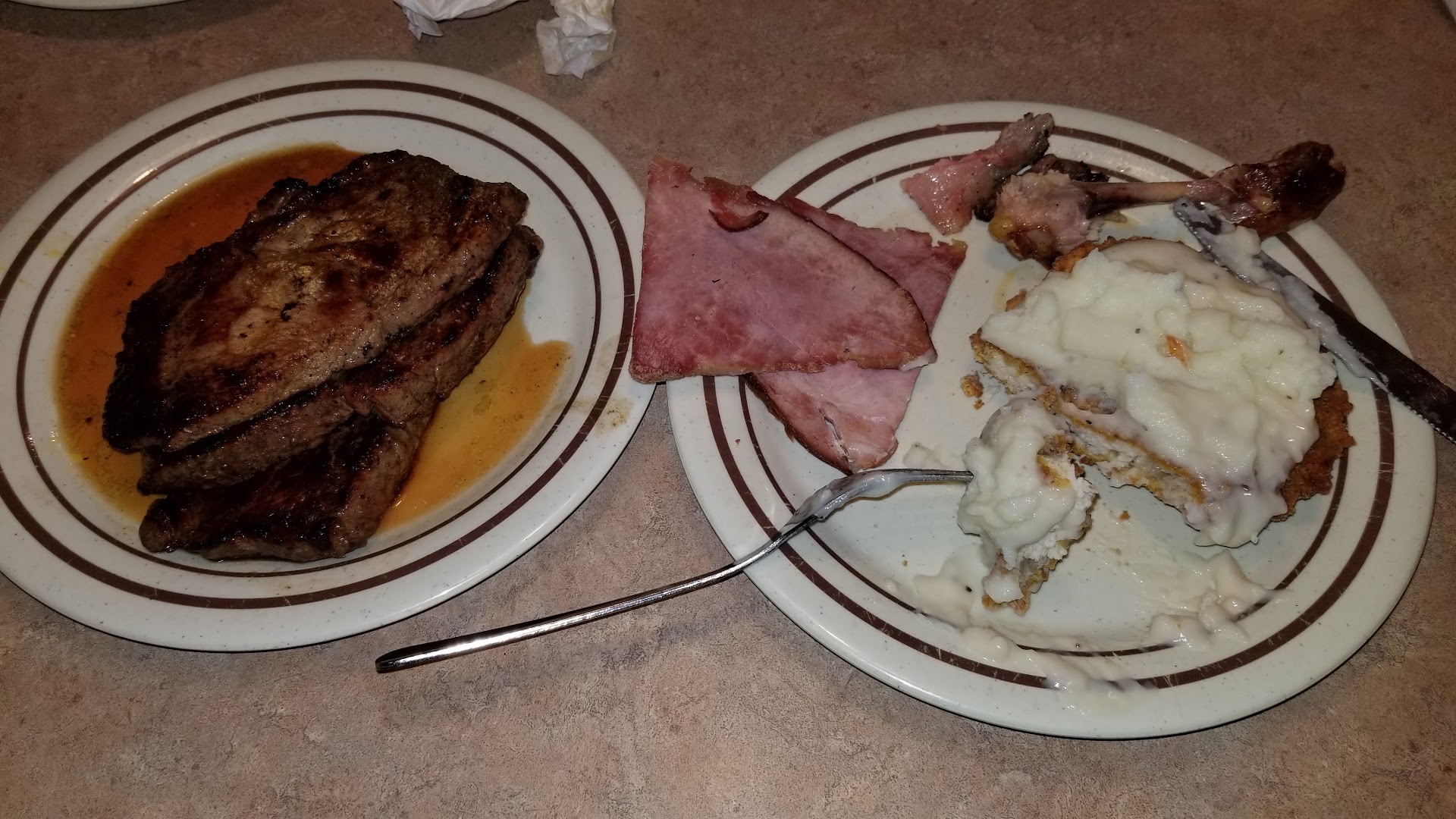 This place has to be fantastic it's a little Hidden Mist now but that's not a hundred percent due to a lack of trying and some areas. The greeter at the front cashier was perfectly lovely and we able to quickly ascertain what I wanted which was the adult entree for lunch. She explains how things have changed due to covid 19. I went to my chosen table expenses and eventually for a wait staff person to ask for my receipt and get me the water I would request. Strangely it took a lot longer than necessary for that particular weight person to leave a table of two men that were heard in her age group and they may have been regulars or customer favorites. But they certainly got more attention than this girl throughout the entire 45 minutes I was there. And they got more attention the entire time and refills and plates replaced and all that stuff that I did the entire time I was there. So that kind of left a bad taste in my mouth and made me not want to get seconds. I basically finished my plate of food asked for a top up on the water when I eventually got my water. And then was able to attempt to re-establish rapport with this weight person hoping that the woman was just having a difficult day or was tired or need of a break if I continue to be sweet and clean and not demanding perhaps it would go better. I didn't really err on the side of being a nightmare but it certainly wasn't all that enjoyable. The food was okay a few things were nice the vegetables were completely overcooked to the max. I realize some people need extremely soft mushy food I would have hoped for a variety of medium country too mushy by then only mushy so that's a little bit of a snag unnecessarily. The pot roast that used to be so good had cooked me and these some gravy but the carrots were from the can and cold almost as if they have been placed on there after the rest of the meal was made to brighten up for color and contrast. One thing that really disturbs me was that when I went back to get my Frozen chocolate frosty type dessert in a cone I walk towards the other area and unfortunately they were playing what was the soap opera perhaps. Oh boy nobody had anything but negligee and the guy it was the middle of the afternoon there were children and pre teenagers eating in that area and in the dining area adjacent to it all of which the large screen TV could be seen the NBC Network had the program one and it just seemed extremely inappropriate under the circumstances. I eventually was able to flag down the staff member and let them know to come over to me and stopped a personal conversation with the two colleagues at the other end of the internal meat and vegetable food station and asked if they could perhaps change the station for appropriateness krowd and myself. I'm no prude but it was a bit much for a public area. The person agreed that would check it out and make attempts to change it. I hope that all work out I left shortly after the bathroom what is a bit messy but that would be the fault of the customers most likely having said that that should be checked on by staff very regularly. And bother me a bit that I couldn't obvious to see that the attempts were made to keep it clean considering how serious it is of a turn-off to see unkempt bathrooms these days and age. I know that they can do better they used to. I suspect they were having a very bad day or week. Perhaps there were some changes made and they were learning the routines. I'm willing to give them another chance and I hope that I am happily surprised I've discovered things are going much better. Thank you for consideration this is all set as constructive criticism by no means to be mean and 100% from the heart. Keep trying Sirloin Stockade of Round Rock I know you...