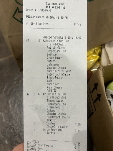 Read moreI got no greeting coming into store. The guy had no customers and was not helpful with my pickup order on Sunday 11/27/22 either. My sandwich was just thrown into a smaller bag and than put into a large carry out bag. The small 6 inch sandwich was not held together and was a mess. I got my drink and grabbed my own bag of chips and left. The lack of customer service effort and inability to put together a sandwich is not that young man's talented arena. Perhaps some extra training for him or find another job more suited for what you can better produce and like as well. Goodluck.. to you. And the store for having qualified individuals. As a consumer we pay a lot for the sandwich to begin with. At least the sandwich should be put together properly and have appeal to...