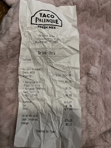 Read moreI've eaten at Taco Palenque at other locations in Texas, and this has consistently been the worst food I've ever had. As you can see from this picture, the "sirloin" is dried up with the consistency of dog food. The tortilla is undercooked and soggy, and like EVERY TIME I've ordered food there, they don't customize your order whatsoever. I ordered these tacos with cheese and sour cream and as you can see, nothing. This happens every time, they don't care what you add or change, you're only going to get what's on the menu even though they charge you for the add ons. The meat does NOT taste like other locations where they fire grill the fajitas or sirloin, this tastes like it was cooked in an oven and over-cooked. I haven't had a good experience at this Round Rock location even one time and I've been there at least 5 times because their other locations are so good. Taco Palenque needs to fire everyone at this location and start over or just shut it down. Drive thru is slower than any other restaurant and they can't even get your order right. Trust me, for what they charge, you're getting ripped off! You'd be better off going to Wal-Mart next door and just buying a can of dog food and some tortillas, at least you'll save a lot of money. Seriously, this place is as bad as they come, nothing is good about them....