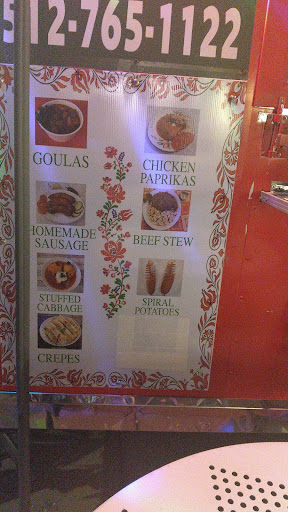 Read moreWe have been searching for authentic Hungarian food in Houston for a long time without luck. When we heard that there was a Hungarian food truck in Round Rock at the outlet mall we had to make a road trip to try it out. I have ties to Hungary, visited multiple times and know what Hungarian food should taste like. This food truck is the real deal. We tried the traditional långos (a deep fried flat bread with toppings a Hungarian street food staple), it is exactly as it should be, it was delicious and huge and the dough was perfect. In Hungary the best långos makers keep their dough recipes a secret. We also tried the spirål krumpli ( spiral potatoes). It was also 5 stars. Finally we ordered some dessert zserbó ( delicious layered cake with an apricot walnut filling, covered in thin chocolate glaze) and måkos guba (a sweet poppy seed-based bread dessert) with retro kåvé ( a wonderful strong espresso served with whipped cream). We also took home several links of traditional Hungarian sausage. The food truck was decorated with typical Hungarian folk motifs, the radio was playing Hungarian music we felt like we were in Hungary. The owners are wonderful kind people from Hungary and will definitely make you feel welcomed. The food and experience is definitely...