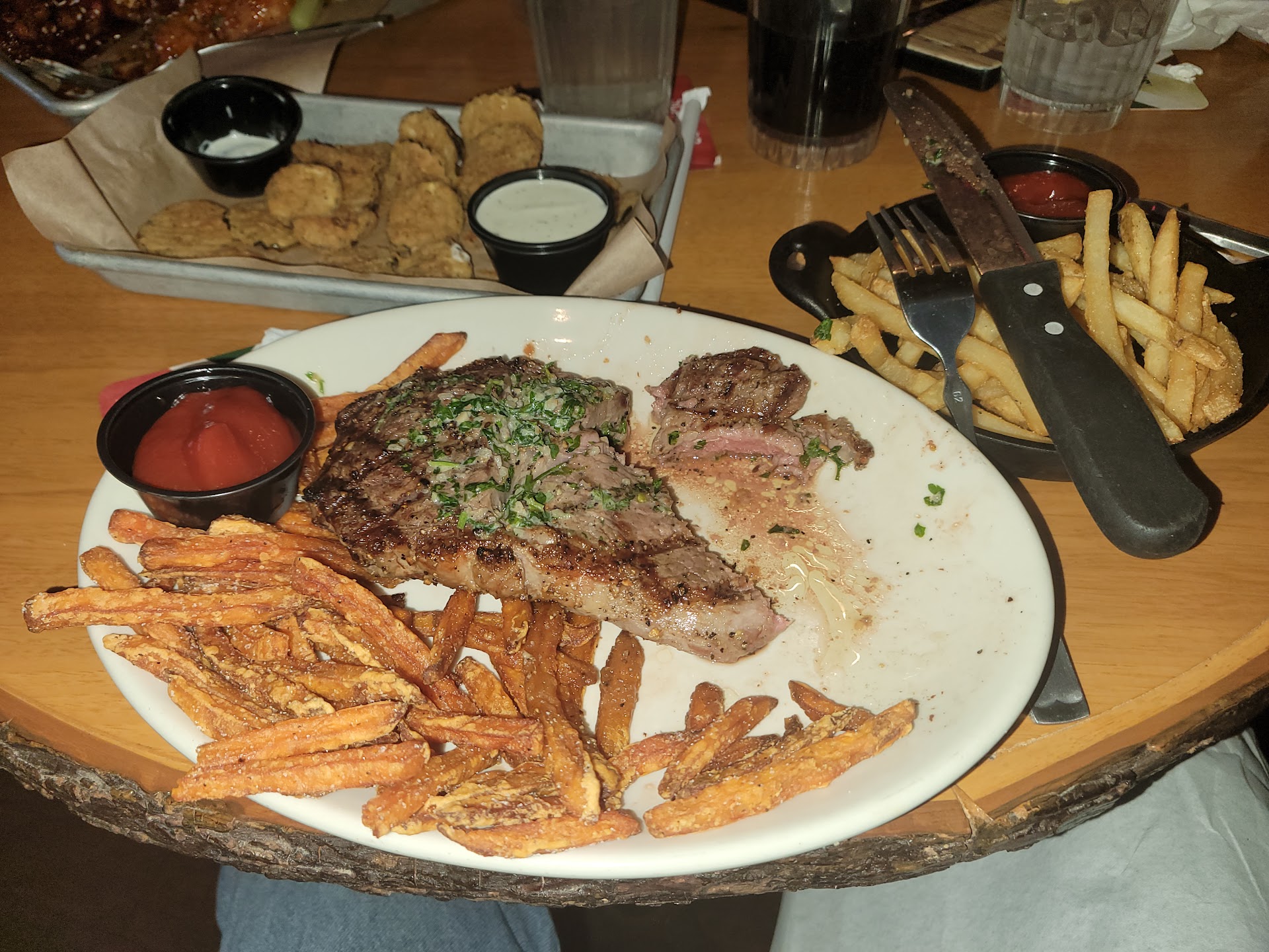 Read moreI went on Tuesday Jun 24th by myself. Worst twin peaks i have ever been to. I am a fan of twin peaks and have been for years visiting the other location in south austin, other locations in texas, and locations in Georgia and Arizona. Has always been one of my go to's for wings and really cold beer. I work in the service industry and am a chef so some things really rub me the wrong way when guests are paying for sub par service. Walked in to the bar the bartender never even said their name or the other bartenders name. I place my drink order and then later place my food order. Never offered water which has usually been customary at other twin peaks locations I have been to. I noticed the food was taking a while so I asked the shorter bartender whose name started with a T if she knows what's going on with my food. She replied with "oh they are probably making it" very coldly. Meanwhile im thinking im asking for a reason mam. It was a slower night the bar was the only part of the restaurant that was full and I've also made wings and fries plenty of times so I understand ticket times and how long it takes to make these items. She never checked on my order and never got back to me about it. It eventually arrived and the half of my wings that were teriyaki were not hot. Warm but not hot and some of them looked like they were fried earlier and then redropped in the oil to heat back up again, so they were a bit dryer and in turn smaller than the rest. Im pretty my order either sat in the window for a while or was forgotten for a bit in one of the sauce bowls then later plated. My fries that I ordered were also forgotten. When the fries did come out they were piping hot which was great. The only part of my meal that was hot. Neither bartender ever asked how everything was which is customary. They mostly spent time talking to each other and ignoring guests/ guest interactions. Terrible experience and worst twin peaks i have experienced. I love twin peaks but this...