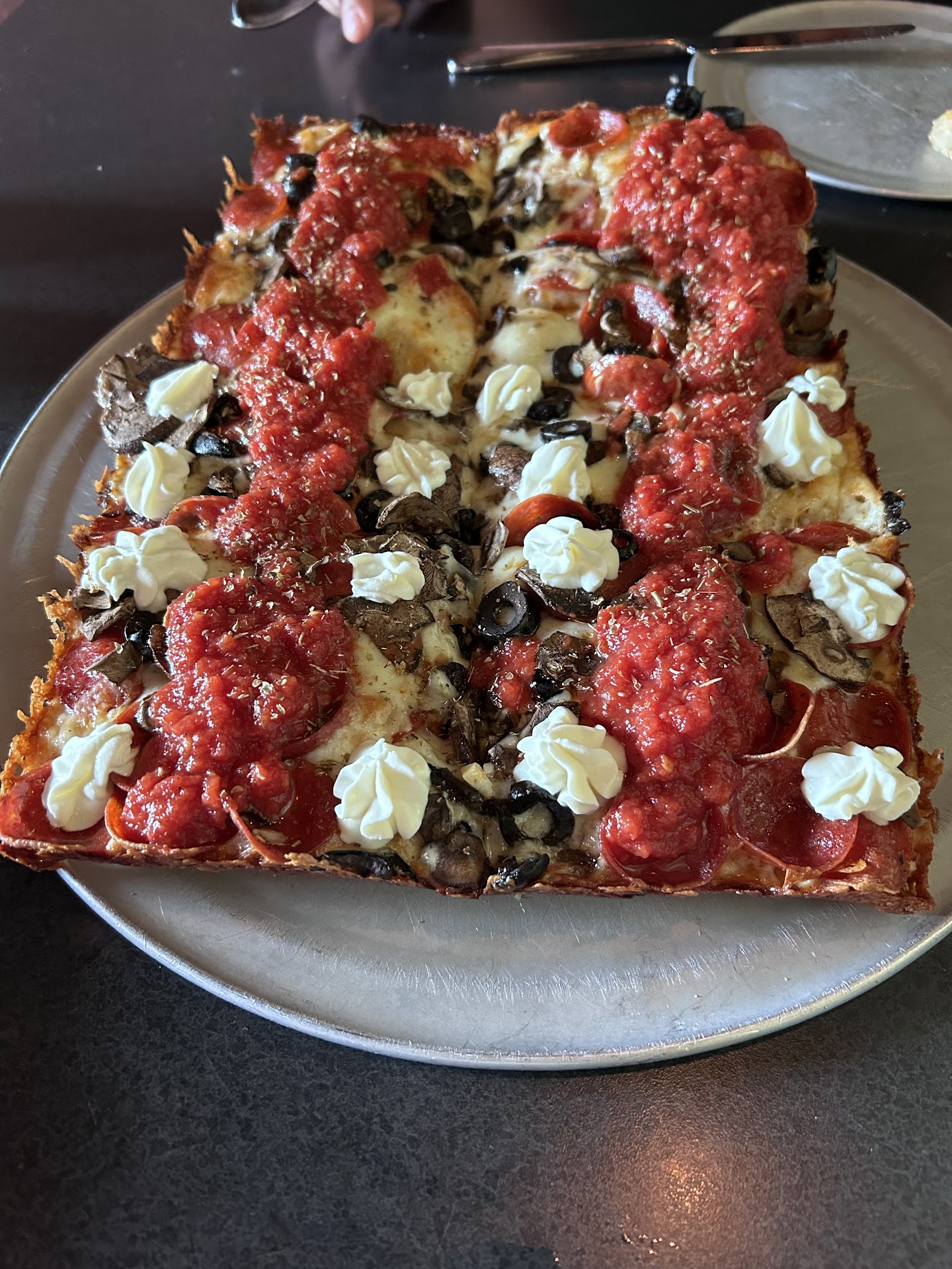 #PizzaPizza ~ DETROIT-STYLE PIZZA: The Detroiter - 4/5 & The Carnivore - 4/5 Luckily I was able to do a 1/2 pizza of one kind and 1/2 of another allowing me to try two pizzas! Both pizzas were solid. Not too heavy or rich. I didn't leave feeling overly stuffed or bloated. While I still prefer thin slice / NYC pizza I'm not opposed to Detroit Style Pizza. I don't detest it like deep dish / Chicago style...yuck!
