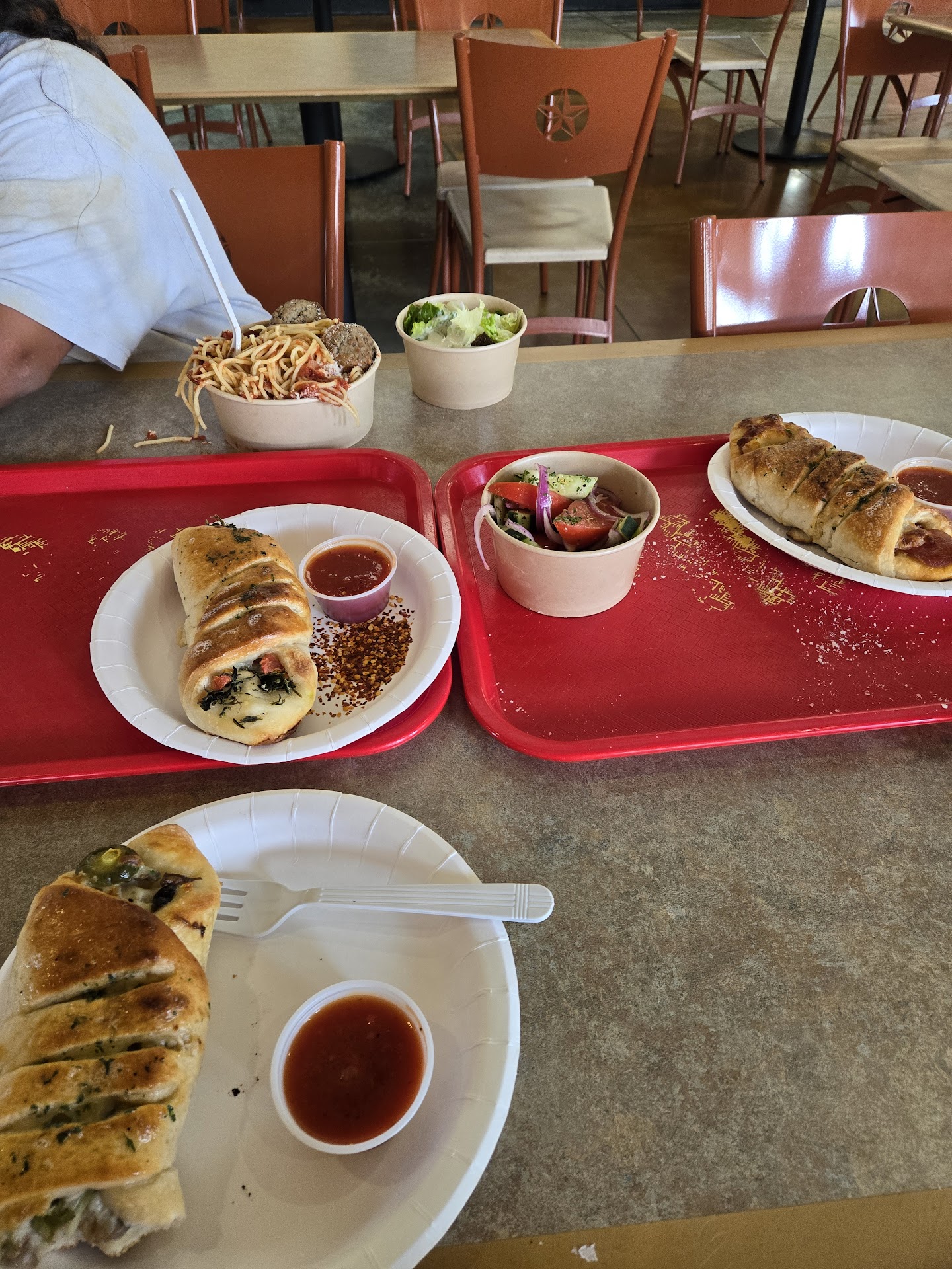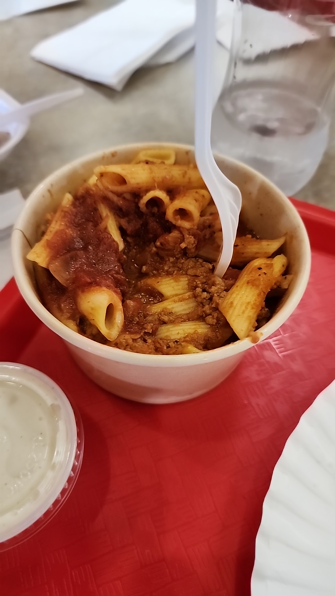 Read moreDO NOT eat here!!! They should have a ZERO rating!! Worst customer service ever. 1) she was on her cell phone for awhile when I got there and would talk to me while talking on the phone. 2) There was NO ONE in line, so I started in the front (I didn't know I just walked up) she said "you start here the line is here" and pointed at the sign and was rude about it. I didn't realize it was a big deal since I was the only one there. 3) while I was ordering she was getting irritated because I said I wanted "the spaghetti and meatballs with the sides" instead if calling it "the triple" because they had it by itself too (WHO CARES! This was my first time here!) 3). I went back to ask for napkins and a different lady from the front asked "did you get your food here" (WTH?! It's napkins!) I told her "yes" so she had to confirm with the lady who's back on her phone. And she gives me TWO napkins!! (REALLY?! There's 4 of us, 3 are little kuds and were eating spaghetti and pizza and yall are so stingy about giving napkins?!) Never again giving my money to people who don't want to be at their job. Horrible...