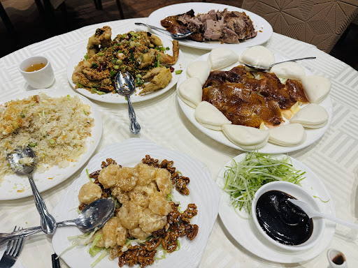 The plates are massive, and the lazy Susan setup makes it perfect for family-style dining. Must-orders include the lobster noodles, walnut shrimp, Peking duck, chow fun, and fried rice — all super flavorful. The food comes out fast, and the servers are quick, helpful, and attentive. They’re great about switching out plates throughout the meal, just ask!