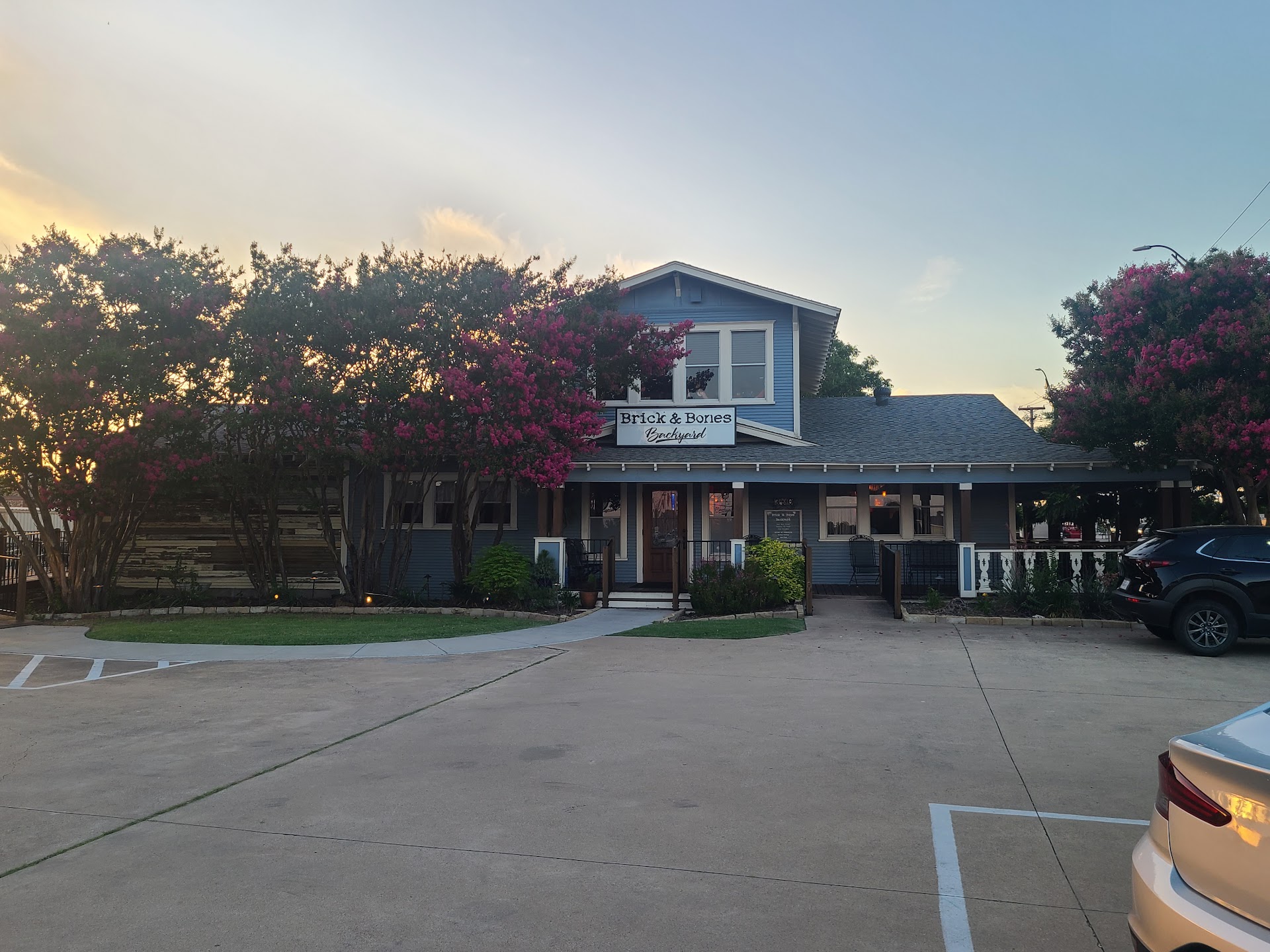 Brick and Bones Backyard is a blue house on the corner of Main St. in Rowlett, Tx, that has been transformed into something magical. This Mexican-Inspired "chicken shop" is offering fried & rotisserie chicken, classic cocktails, and live music in a rustic setting.