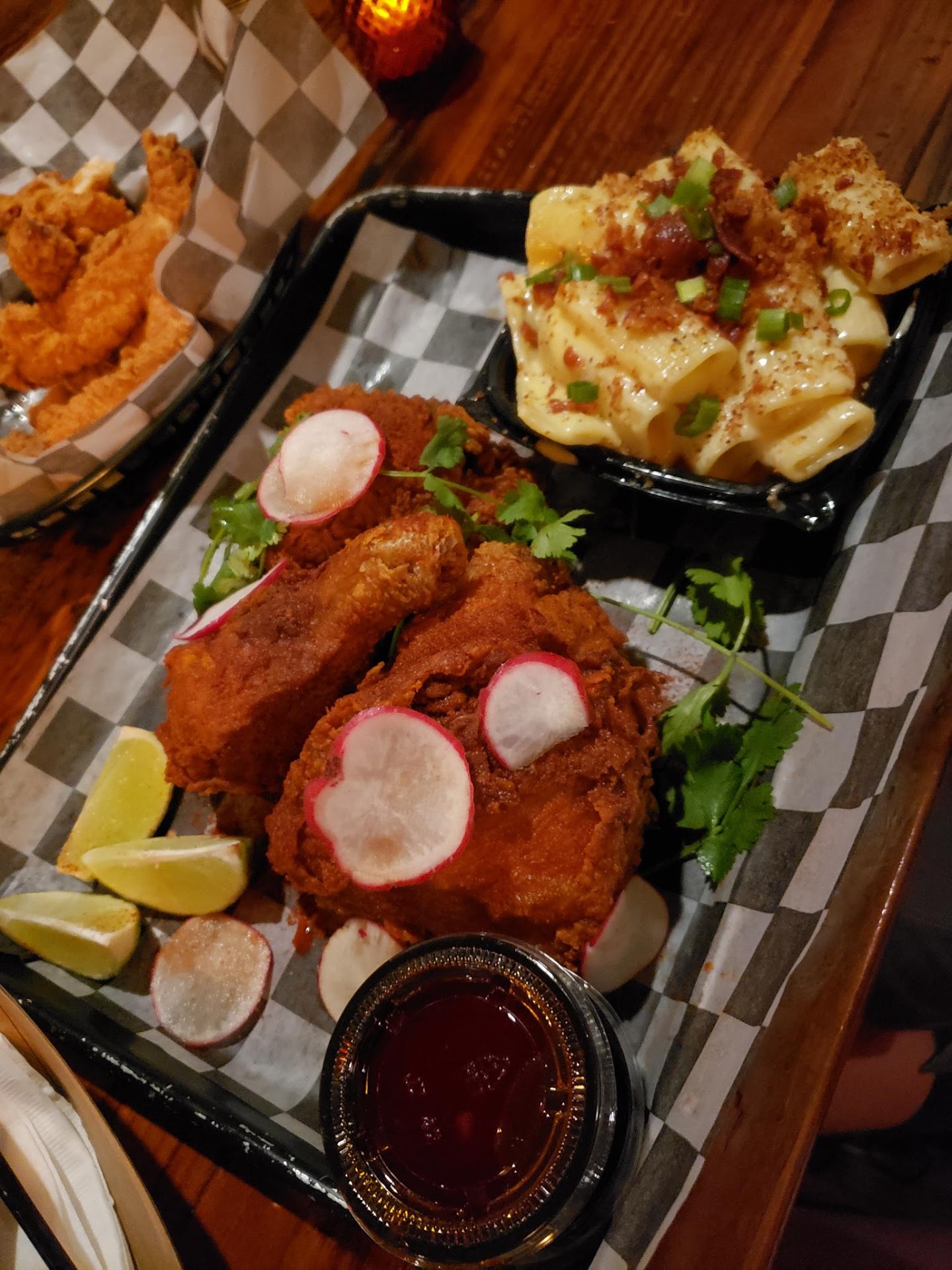 The menu is diverse and offering all things chicken that is brined 24 hours, fried and can be order breaded or naked( for the gluten-free in you). They also have rotisserie chicken, tenders, sandwiches, salads, bowls and wings, along with unique sides. Poblano mashed potatoes, habanero mac n cheese, mexican corn, etc... often garnished with fresh radish and cilantro around out the menu, with top notch service to boot.