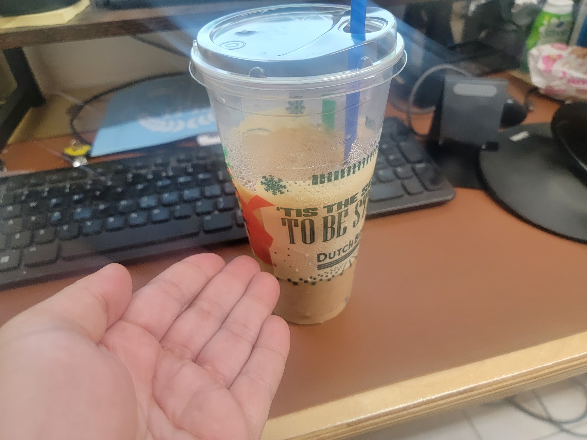 I was handed the drink and it passed multiple hands and it was still dripping coffee and it wasn't wiped down. I had a group of 4 people standing at the windows talking to each other about how long they have been there (and I get 2 of them were new) but no one really made small talk (and they weren't like teaching the drinks) I just feel like someone should've thought to wipe the drink down cause now I have coffee in my cup holders that I have to clean and it's sticky. I just threw away the whole drink without drinking it cause it kept dripping on my clothes and my car.