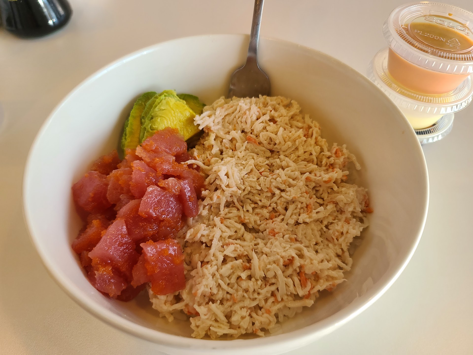 The Tuna Bowl is my go-to, and even with health restrictions (RIP, my beloved spice! 😭), they make it to perfection for me. They swap out the spicy ribs for regular, and put the sauce on the side, so I can control what goes into it. I also request 1/2 the rice, because I get too full otherwise. But if you like rice, the portions are ample!