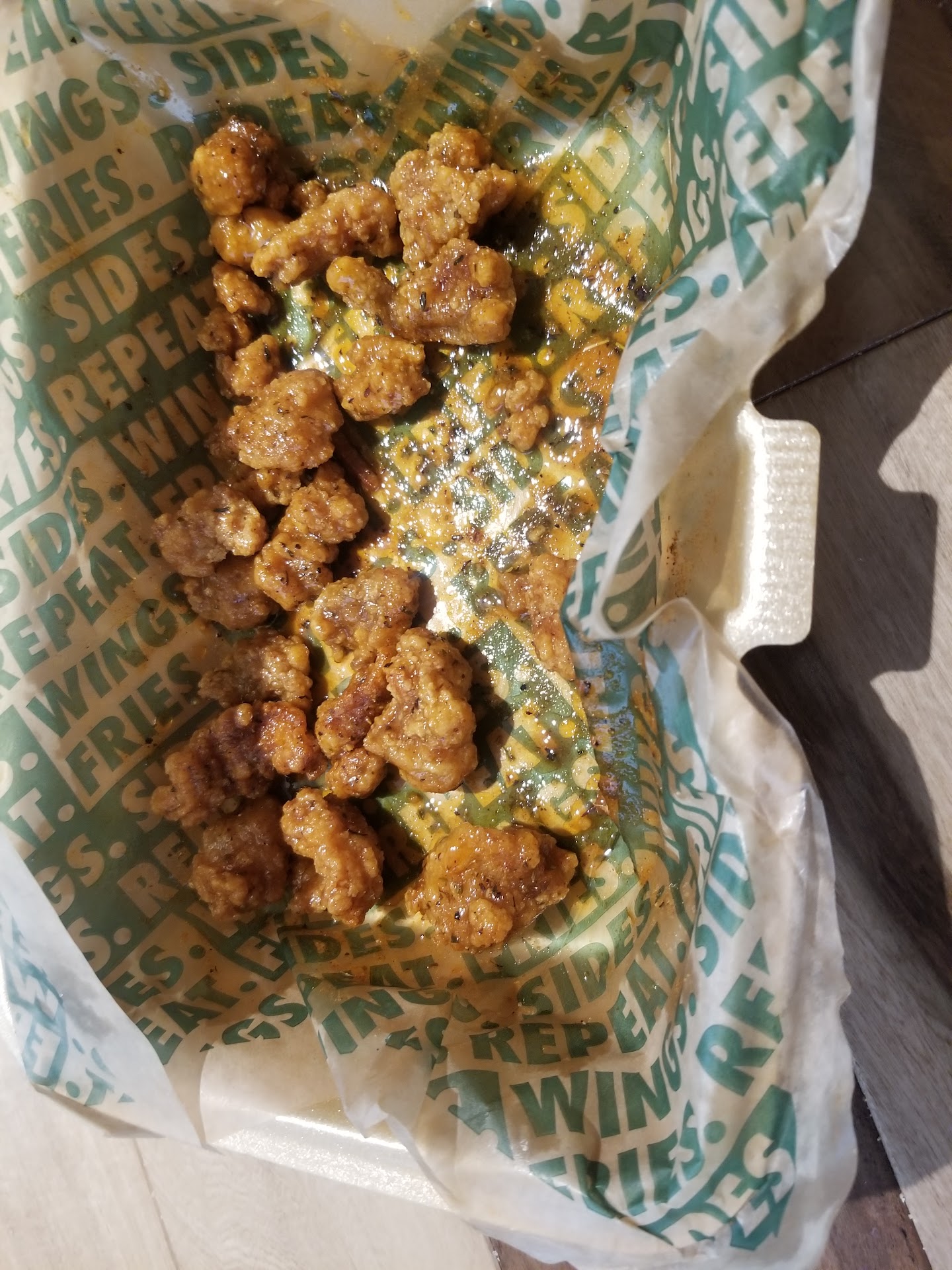 Read moreAfter my daughter waiting 25 minutes on hold to order, she called back and was put on hold yet again. Finally we ordered online. W hen arriving there was only 3 tables so first there should have not been 25 plus minutes of hold time. When arriving home to eat, the fries were extremely soggy and there was absolutely NONE of the seasoning that wing stop is so famous for. Nevertheless, we put our own seasoning and began eating and drinking our drinks. After a few minutes we all felt disgusted with how soggy the fries and wings were but the drinks were great! I was so upset considering we go to wingstop several times a month and have never experienced this. So I called and to my surprise I got an answer. I spoke to the woman on the phone and told her how disappointed I was with our order. Not only did they not offer and apology they didn't offer anything. So I asked for a refund. The woman said if you want a refund then bring your entire order including your drinks and we will give you a refund. Umm, we drank our drinks, I fed my dogs the fries and I threw out the wings. I will never go to or order from this location again. They lack customer service and the quality of their food is disgusting. I am extremely mad at how they had a lack of concern for their poor customer service and quality of their food. Not caring about whether or not they made a customer who is not only a faithful returning customer but now an unhappy faithful customer, happy. All they had to do was make it right by refunding my money and they would have gotten another chance with my business, they blew it! I would be happy to speak to higher management about how our experience was but doubtful it would do any good. I will give my support to another establishment...