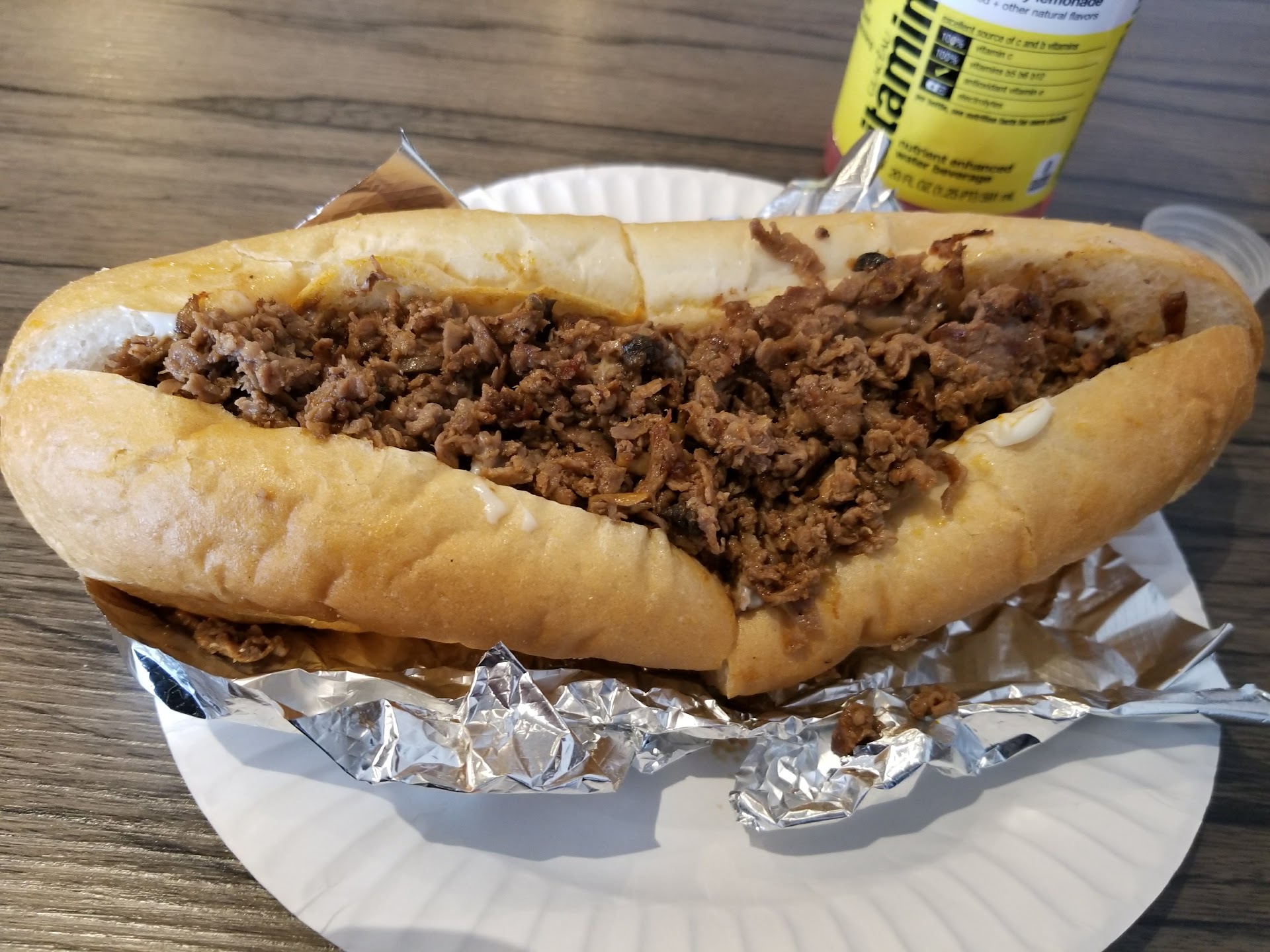 The calzone: I expected greasy and falling apart, like most local pizza joints would typically serve. I was pleasantly surprised by a well put-together, not at all greasy pocket that I could pick up without dripping grease and bits everywhere. Held up nicely, even when dipping in their (surprisingly tasty) marinara. Tasted just like a cheesesteak sub, except the crust was even better than a fresh-baked sub roll. If I wanted bread, I would just order a calzone with nothing in it and get some butter on there. Perfect.