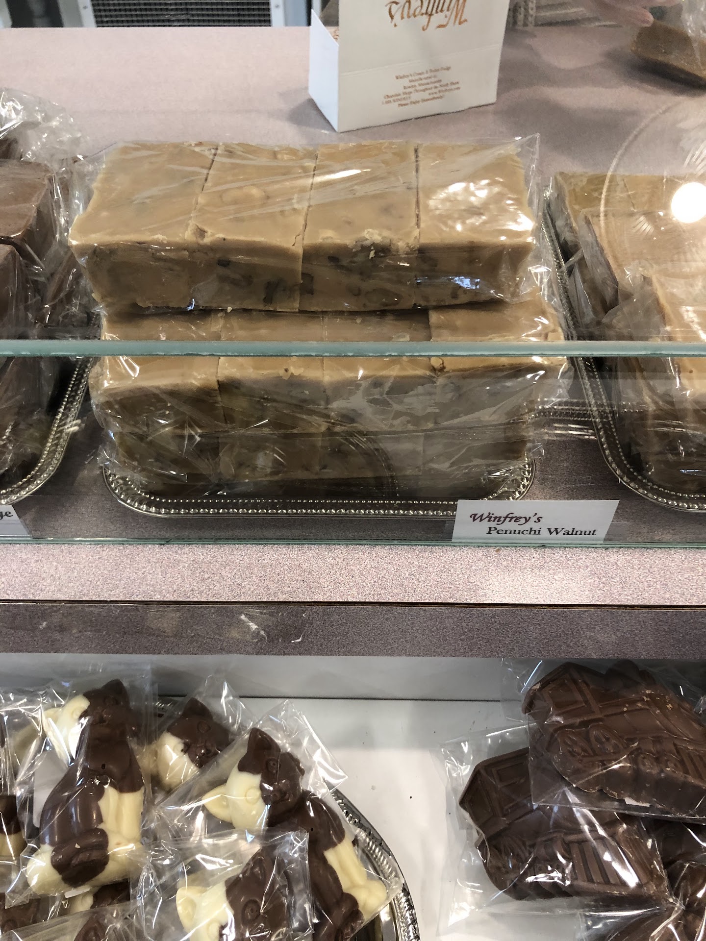 My son stopped in there last Saturday to get fudge that his fiance requested for her birthday. He knew we would like it, so he picked up 3 lbs. of chocolate fudge-2 for them and 1 for us. Honestly, I haven't purchased it for many years, because when I've picked up individually wrapped pieces in other locations they supply, I always thought it was just OK. It seemed not always as fresh as I would want, (not as creamy), and it also always seemed to taste like it had had a bit of salty taste to it. I preferred 2 other establishments for fudge and dark chocolate pecan turtles. I don't know if Winfrey's makes the turtles we like, but I'll find out tomorrow when I plan on going by their store on Rt.1 in Rowley, MA. Now as for the fudge that my son brought to us last Sat. I was expecting the same as I had always sampled as mentioned above. A BIG FAT RETRACTION on an old opinion! It was absolutely delicious, (which is why I'm going back tomorrow!) It was creamy, probably because it was more recently made, since it's was coming right from the source. Now the taste, and I had it many times in the past, and always thought it wasn't quite as "chocolaty" as I wanted, but worse, I always tasted salt. Many recipes have a pinch of salt, but they're making it on a larger scale, so I always thought that someone must be too heavy-handed on the salt and maybe it wasn't added precisely with machinery. I really have no idea what the reason is, or how that make it, or may e even my taste buds have changed and they aren't doing anything different! In any case, it is no longer an issue. I can truly say now that it's delicious-I love it, and will be a regular customer! I hope they have dark chocolate pecan turtles too, like the other homemade candy establishments I have gone to in the past. I also wonder how often they make their fudge and is there a better day to go to get it the freshest? I'll have to ask. So Winfrey's, THANK YOU-You...