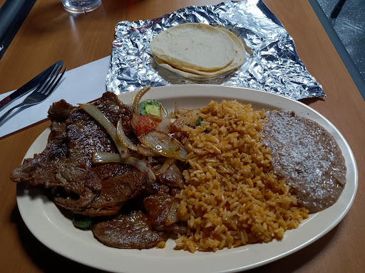Surprisingly quiet for a Friday night, which I enjoyed. I noticed the perfect 100 "A" score posted next to the cashier station, which always puts me at ease, knowing my food will be properly prepared. The dining area was simple, but spotlessly clean. The 'A La Mexicana (Steak)' plate I ordered arrived very quickly, and was perfectly prepared. The menu is simple, but the selections are all great choices. More like a street taco truck menu than a larger chain restaurant, but that's just fine. There aren't any Margaritas (or Liquor), but they do have Cervezas (Beer selections) available. A nice quiet meal of good food was what I was looking for, and they provided...